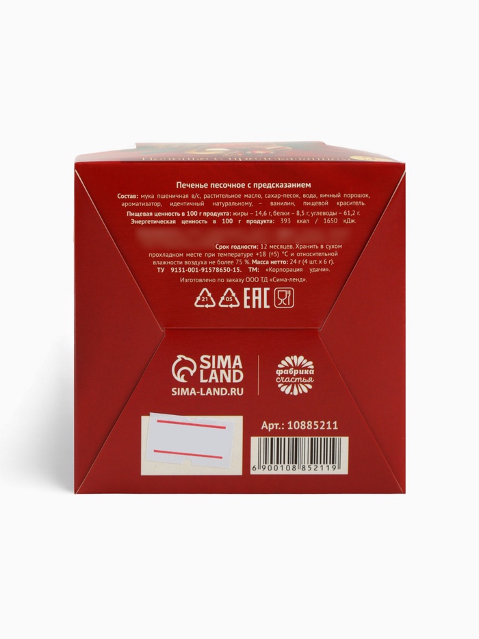 Габариты: 8 x 8 x 8,5 Доставка: Платная Страна: Россия В боксе: 140 шт Состав: См. на упаковке Материалы: см. на упаковке Фасовка: по 1 шт Индивидуальная упаковка: Термоусадочная пленка Сертификат: ЕАС Набор: Да Вес нетто, г: 24 Тематика: Новогодняя Вид упаковки: Коробка картонная с PVC Символ года: Нет Тематика праздника: Новый год Вид: С предсказанием Тип: Песочное Фиксированная цена: Да ПРИ ОФОРМЛЕНИИ ЗАКАЗА, ПРОСИМ ЗАПРАШИВАТЬ АКТУАЛЬНЫЕ СРОКИ ГОДНОСТИ У МЕНЕДЖЕРА Комментарии к товару