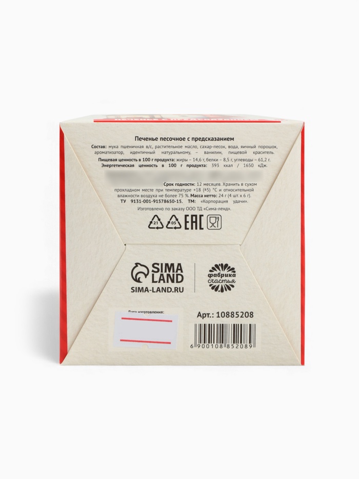 Габариты: 8 x 8 x 8,5 Доставка: Платная Страна: Россия В боксе: 140 шт Состав: См. на упаковке Материалы: см. на упаковке Фасовка: по 1 шт Индивидуальная упаковка: Термоусадочная пленка Сертификат: ЕАС Набор: Да Вес нетто, г: 24 Тематика: Новогодняя Вид упаковки: Коробка картонная с PVC Символ года: Нет Тематика праздника: Новый год Вид: С предсказанием Тип: Песочное Фиксированная цена: Да ПРИ ОФОРМЛЕНИИ ЗАКАЗА, ПРОСИМ ЗАПРАШИВАТЬ АКТУАЛЬНЫЕ СРОКИ ГОДНОСТИ У МЕНЕДЖЕРА Комментарии к товару
