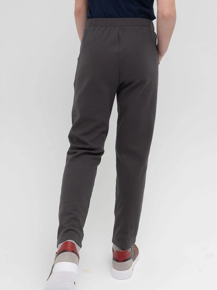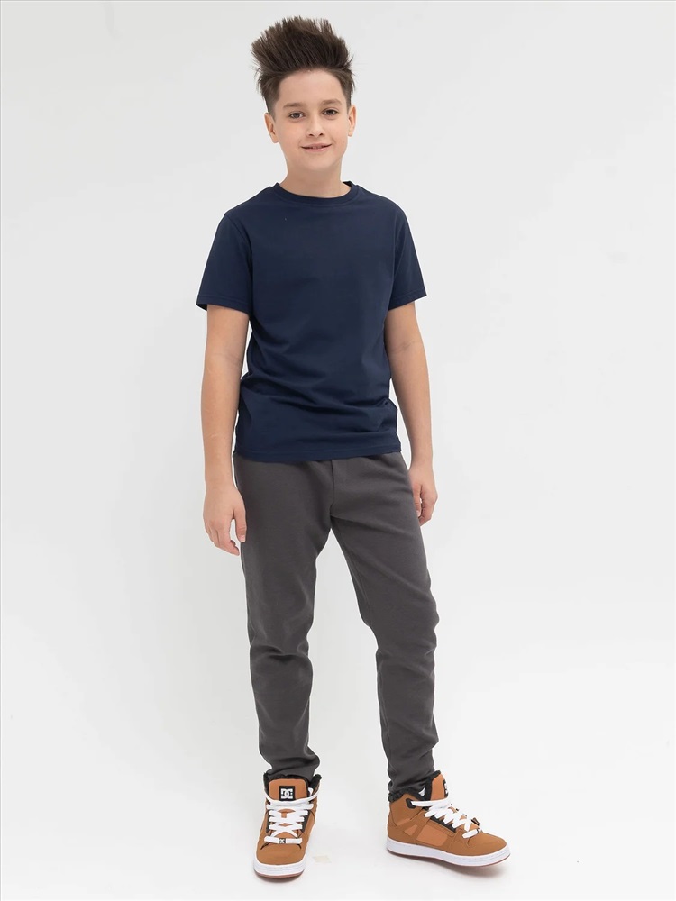 Школьные брюки для мальчика. Выглядят как классические: карманы, детали, покрой. Но сшиты из плотного трикотажа поэтому очень удобные и комфортные. Хороши на любую фигуру, объем в поясе регулируется шнурком. Не передавливают живот и дают возможность свободно дышать. Для создания крутого образа, достаточно просто подвернуть брюки. Можно покупать на вырост. Сочетается с любым верхом как в школьных, так и в повседневных образах.
