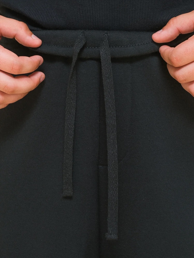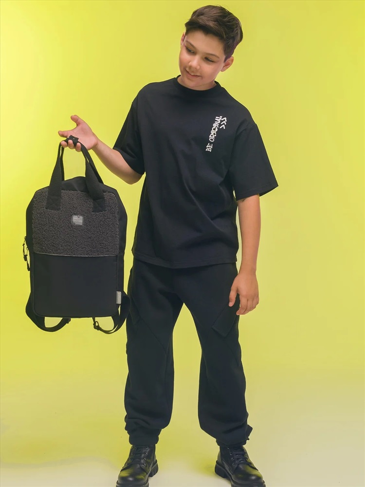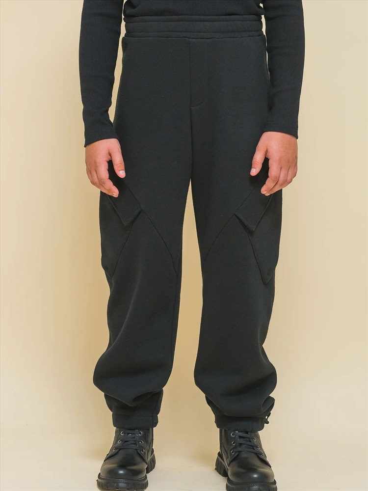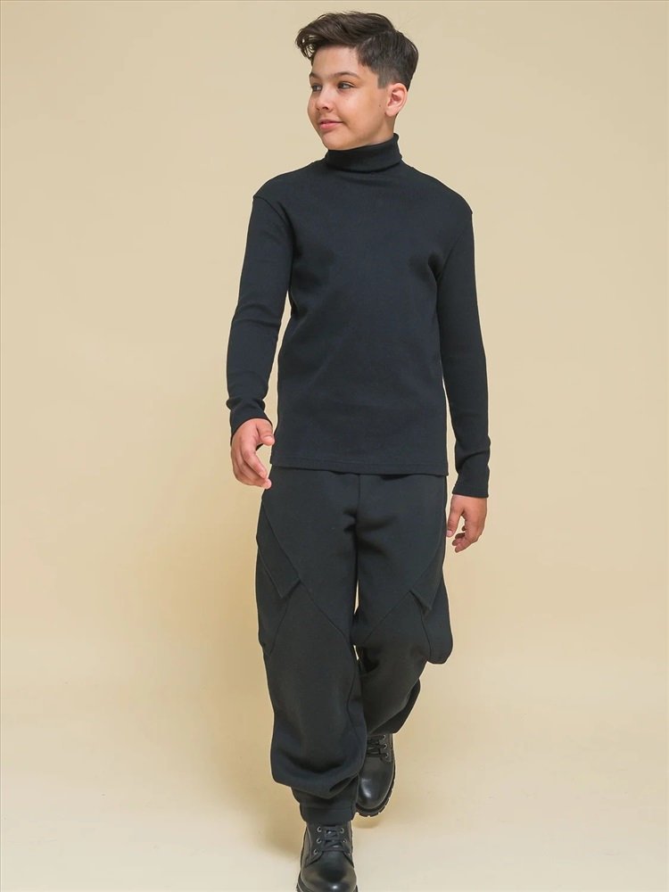 Детские брюки карго для мальчика. Комфортные штаны трендового широкого силуэта не будут стеснять движений ребёнка. По переду наклонные швы, в области колена вытачки — это создаёт актуальную форму брюк. Оригинальные карманы с вытачками закрываются клапанами на велькро (липучку) — просто и быстро открываются и закрываются, даже в перчатках. Широкая резинка в поясе не давит и не перекручивается. В поясе предусмотрен шнурок, с помощью которого можно регулировать объём и посадку брюк. По низу штанин также широкая резинка с возможностью регулировки эластичным шнурком со стопперами по бокам. Брюки детские выполнены из футера с начёсом, что помогает изделию сохранить актуальную форму и объём, а также обеспечивает тепло. Штаны однотонные, без принта. За ними легко ухаживать. В составе ткани преобладает высококачественный хлопок — брюки мягкие и воздухопроницаемые. Благодаря полиэстеру изделие легко стирается, быстро сохнет и надолго сохраняет отличную форму. Брюки широкого кроя выполнены в классическом чёрном цвете — их легко сочетать с различными футболками, толстовками, худи и куртками. Размерный ряд: 1 (86): 2 (92): 3 (98): 4 (104): 5 (110): 6 (116): 7 (122): 8 (128): 9 (134): 10 (140): 11 (146). Идеальные брюки на мальчика-подростка, подойдут также малышам и мальчикам дошкольного и младшего школьного возраста. Брюки карго для мальчика можно носить в детский сад, на прогулки, они подходят для активного отдыха, спорта, дома. Для круглогодичного применения: летом, осенью, зимой, весной и демисезон. Стильный и практичный подарок для сына, внука, брата или племянника на любой праздник.