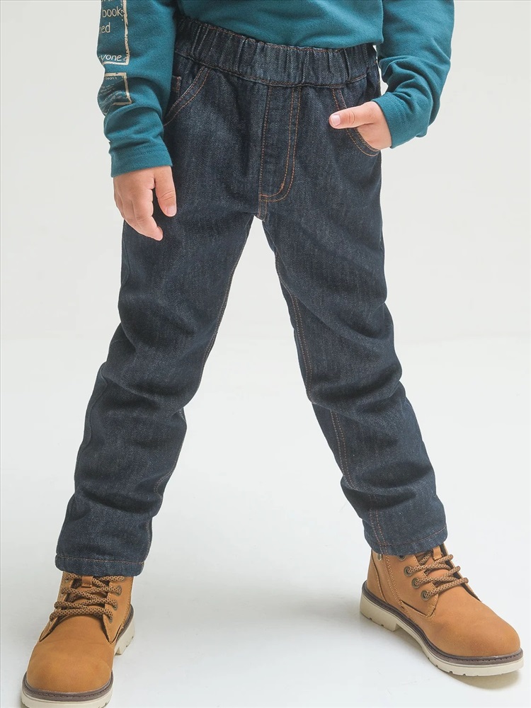 Утепленные джинсы для мальчиков синие. Теплые детские брюки из невероятно комфортного хлопка на подкладе из флиса, на резинке сзади для идеальной посадки и регулировки объема по талии, спереди на замке и пуговице. Модные классические свободные и широкие на бедрах и зауженные к низу. Удобные боковые карманы и накладные карманы сзади, делают изделие практичным. Демисезонные штаны для мальчика продуманны в деталях: это идеальный базовый гардероб, они хорошо сочетаются с верхней одеждой, подходят как повседневная одежда на осень и зиму, в садик, в них комфортно каждое движение. Джинсовые брюки согреют на прогулках и подарят уют в любую погоду. Штаны зимние для малыша подойдут на любую фигуру. Универсальные утепленные брюки для детей для повседневной носки станут самыми любимыми для ребенка.