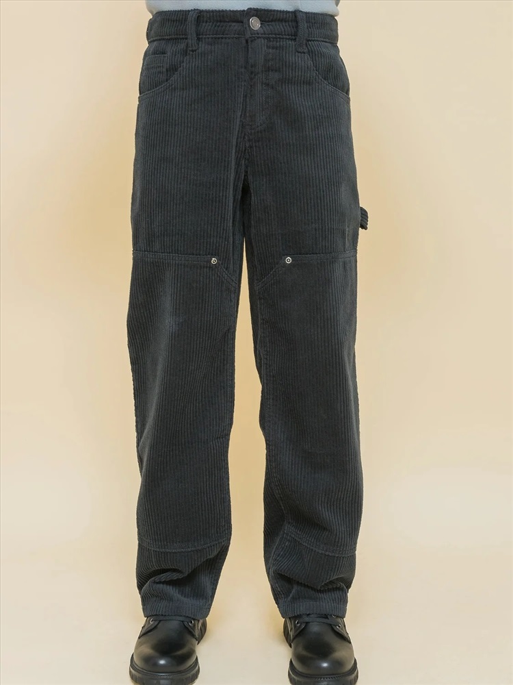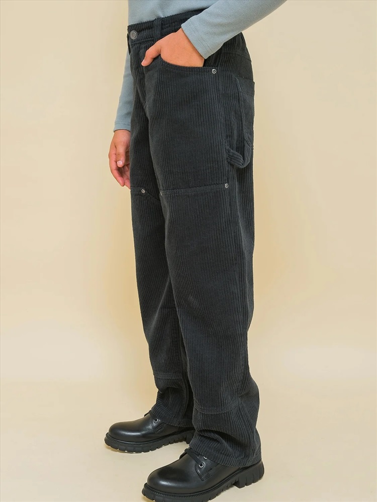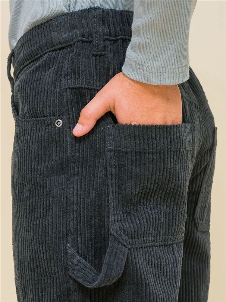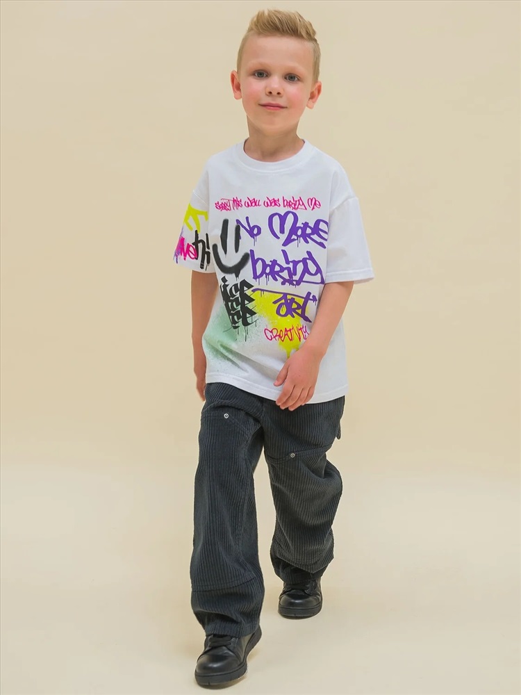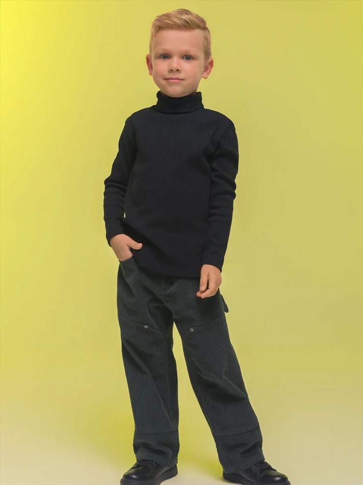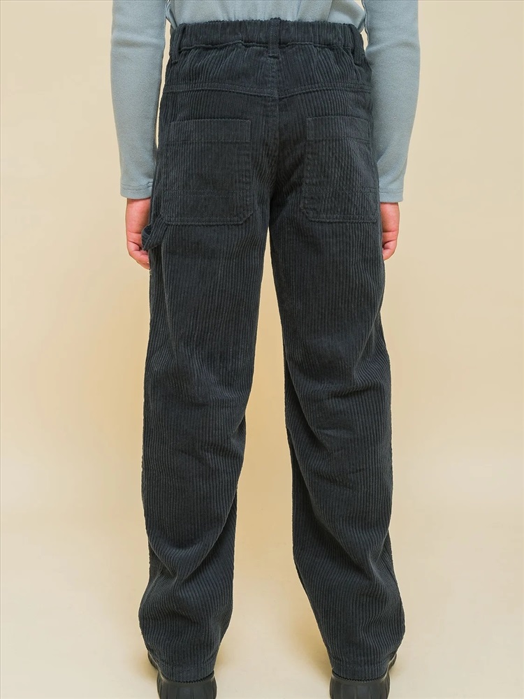Брюки вельветовые в рубчик для мальчика. Брюки прямые модного широкого силуэта — не будут сковывать движений ребёнка и подарят комфорт. По переду удобные боковые карманы, на спинке кокетка и накладные карманы для мелочей. Спереди брюки украшают оригинальные декоративные членения, создающие эффект брюк рабочего, сбоку декоративная петля из основной ткани — трендовые, стильные детали. Классическая застёжка на молнию и пуговицу. В поясе со стороны спинки резинка, что обеспечивает идеальную посадку и прилегание. В поясе предусмотрена внутренняя регулировка ширины изделия по талии. Брюки однотонные, без принта. За ними просто ухаживать. В составе ткани 100% высококачественного хлопка — штаны мягкие и безупречно пропускают воздух, позволяя коже ребёнка дышать. Модель выполнена в актуальном тёмно-сером цвете. Серые брюки легко сочетать с различными джемперами, футболками, свитшотами, худи, куртками. Размерный ряд: 3 (98): 4 (104): 5 (110): 6 (116): 7 (122): 8 (128): 9 (134): 10 (140): 11 (146). Отличные брюки для мальчиков дошкольного и младшего школьного возраста, а также подростков. Брюки широкого кроя можно носить в детский сад, на прогулки, на отдых, а также дома. Изделие для круглогодичного применения: летом, осенью, зимой, весной и демисезон. Замечательный подарок сыну, внуку, племяннику или брату на День рождения и любой другой праздник.