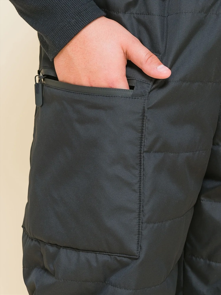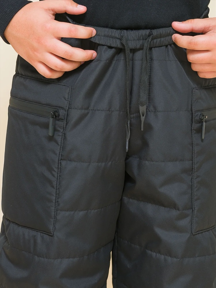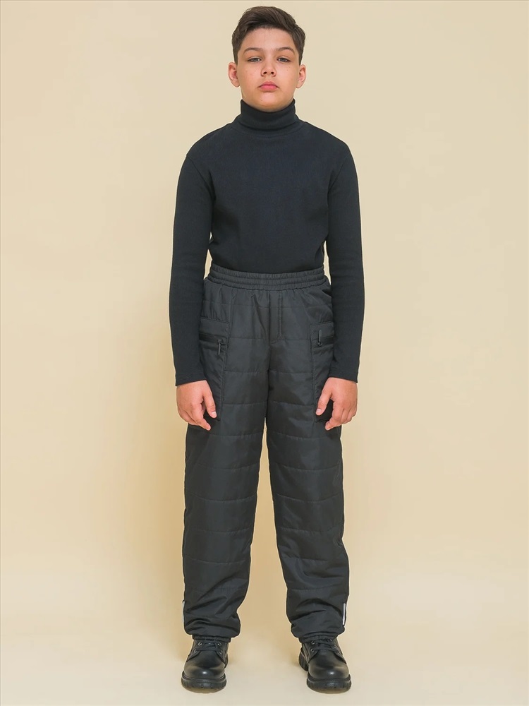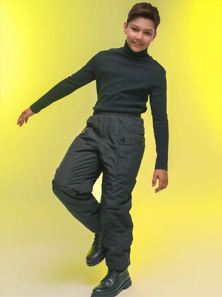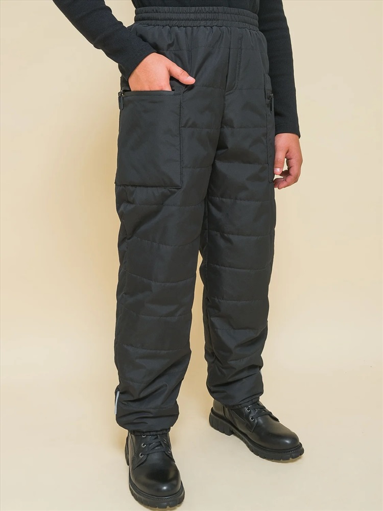Зимние брюки из курточной ткани для мальчика. Штаны без застёжки. В поясе мягкая широкая резинка — не давит и не перекручивается. Предусмотрен шнурок для регулировки ширины и посадки изделия. По бокам накладные утеплённые карманы на водонепроницаемой молнии — содержимое карманов не намокнет. По бокам молний на карманах ограничители из ткани — для предотвращения разрыва. На штанинах узкие манжеты из основной ткани на комфортной резинке. В боковых швах и по низу брюк светоотражающие элементы — безопасность в тёмное время суток. Изделие декорировано горизонтальной стёжкой. За штанами легко ухаживать. Модель выполнена из полиэстера — брюки тёплые, не промокают, легко стираются, быстро сохнут, сохраняют отличную форму и цвет надолго. Внутри уютная трикотажная плюшевая подкладка из с небольшим ворсом. Модель выполнена в универсальном чёрном цвете. Её легко сочетать с различными куртками. В линейке представлены следующие размеры: 7 (122): 8 (128): 9 (134): 10 (140): 11 (146). Зимние брюки подходят для мальчиков младшего школьного возраста, а также подростков. Рекомендуемый температурный режим: не ниже минус 25 градусов. Утеплитель: синтепон 60 г/м2. Модель идеальна для носки в школу, для прогулок и активного отдыха, спорта. Утеплённые штаны — стильный и практичный подарок для сына или внука на любой праздник.
