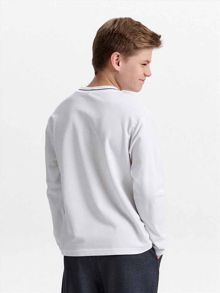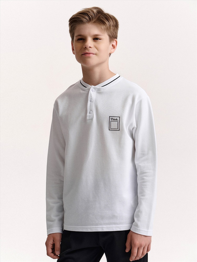 Базовая футболка хенли для мальчика с длинным рукавом. Подходит в качестве школьной одежды. Горловина отделана декоративной эластичной рибаной, которая долго сохраняет форму, устойчива к частым стиркам, не растягивается. Застёжка под горловиной на три кнопки — джемпер школьный удобно надевать и снимать. Трикотажная футболка выполнена из 100% высококачественного хлопка. Благодаря натуральному составу ткани пике изделие мягкое, воздухопроницаемое и очень комфортное. Не жарко даже самому активному ребёнку. На груди джемпер украшен лаконичным силиконовым принтом, устойчивым к многочисленным стиркам. Такие футболки на мальчика — хороший вариант одежды для школы. Модель представлена в нескольких универсальных расцветках — легко сочетать с любыми брюками, пиджаками. Рекомендуемый уход: стирать при температуре не выше 30 °С, без предварительного замачивания, с изнанки, расправить перед сушкой. Выбирайте нужный размер по таблице размеров на фото. Цвет товара на экране вашего устройства может отличаться от цвета изделия вживую.