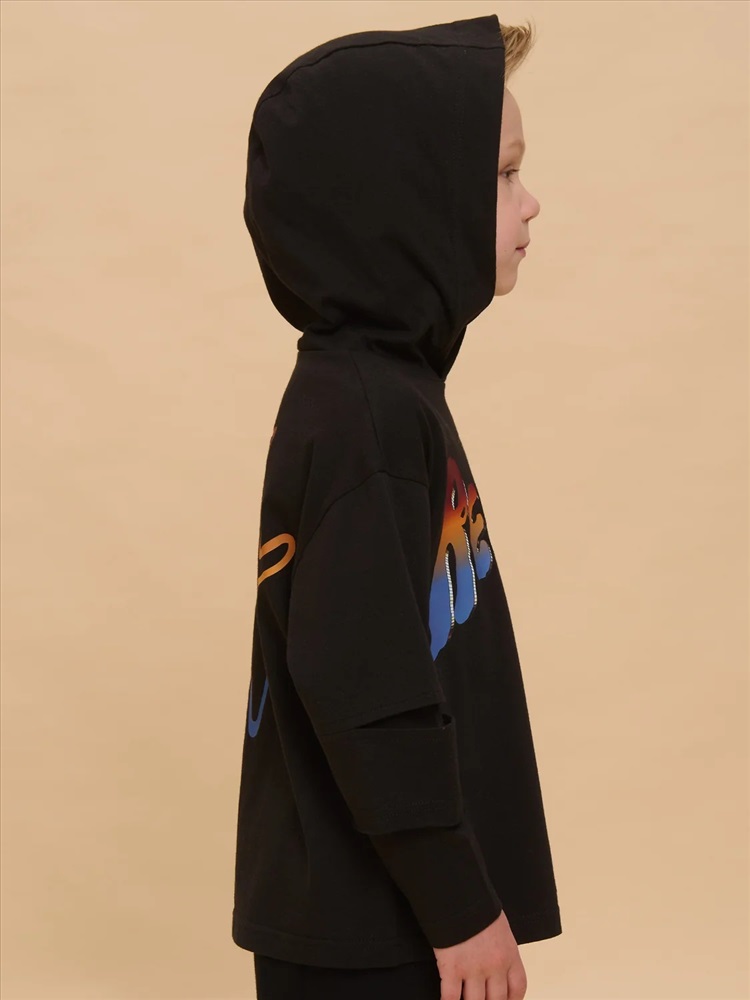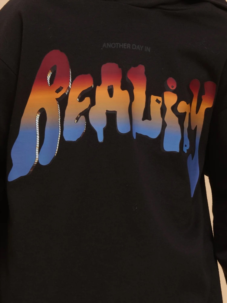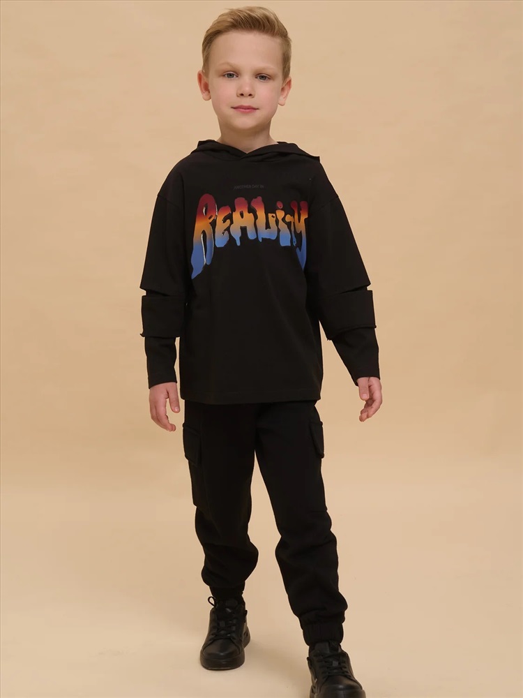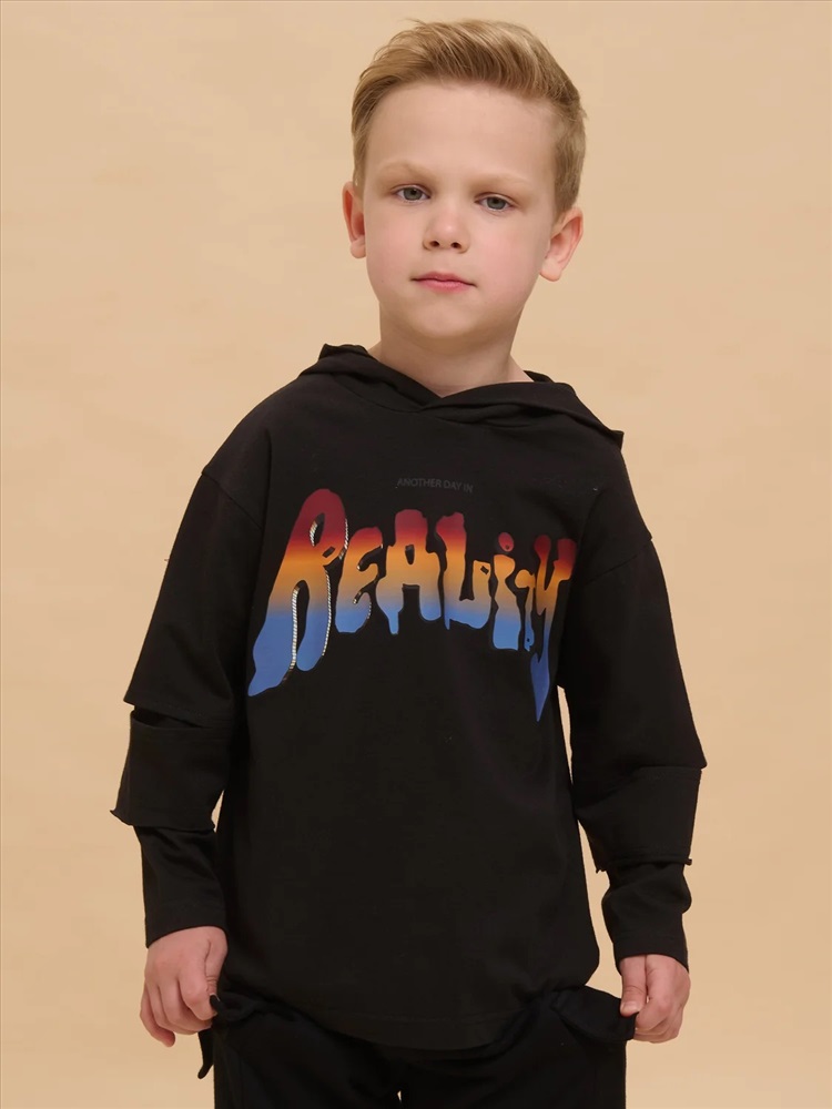 Худи детское для мальчика. Джемпер актуального оверсайз-силуэта со спущенным плечом подарит ребёнку комфорт и не будет сковывать его движений. Худи с капюшоном с двумя швами — это обеспечивает анатомически правильную форму и комфортную посадку по голове. Модель с имитацией многослойности в стиле гранж, что актуально в этом сезоне. Рукава состоят из двух частей, которые наслаиваются друг на друга. На верхней части аккуратные декоративные разрезы. Изделие неприхотливо в уходе. Худи оверсайз с принтом выполнено из 100% высококачественного хлопка — джемпер мягкий, дыщащий и гипоаллергенный. Принт эластичный и прочный — отлично переносит частые стирки. По переду принт в виде забавного монстрика, на спине надпись, перевод: «реальность». Изделие выполнено в универсальной расцветке, его легко комбинировать с любыми брюками, джинсами. Отличное худи оверсайз для мальчиков дошкольного и младшего школьного возраста, а также подростков. Джемпер подходит для детского сада, прогулок, отдыха, дома. Худи с капюшоном для мальчика подходят для круглогодичной носки. Помните о правильном уходе за изделием: рекомендуется стирать при температуре не выше 30 °C, без предварительного замачивания, с изнанки. Это поможет сохранить качество и цвет худи на длительное время. Не забывайте о выборе правильного размера. Используйте таблицу размеров на фотографии, чтобы выбрать подходящий вариант для вашего мальчика. Обратите внимание, что цвет товара на экране вашего устройства может отличаться от реального.