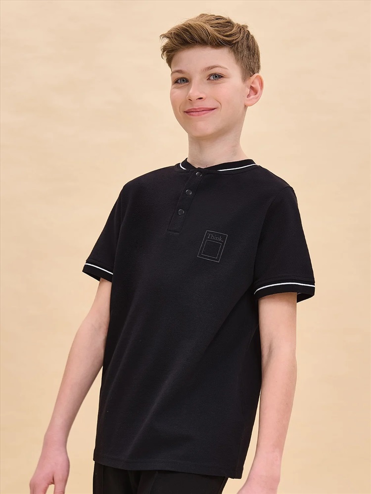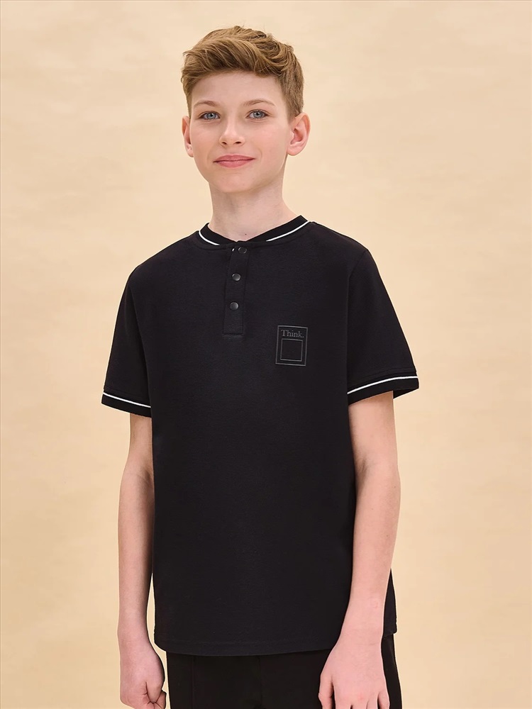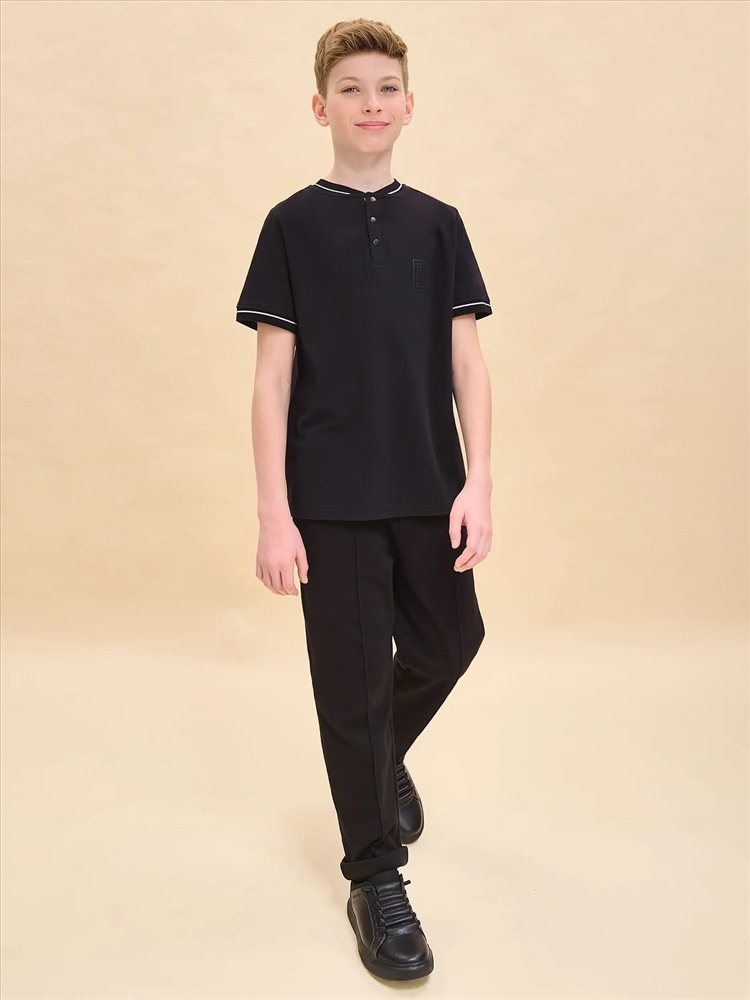 Базовая футболка хенли для мальчика. Подходит в качестве школьной одежды. Горловина отделана декоративной эластичной рибаной, которая долго сохраняет форму, устойчива к частым стиркам, не растягивается. Застёжка под горловиной на три кнопки — джемпер школьный удобно надевать и снимать. Трикотажная футболка выполнена из 100% высококачественного хлопка. Благодаря натуральному составу ткани пике изделие мягкое, воздухопроницаемое и очень комфортное. Не жарко даже самому активному ребёнку. На груди футболка базовая украшена лаконичным силиконовым принтом, устойчивым к многочисленным стиркам. Такие футболки на мальчика — хороший вариант одежды для школы. Модель представлена в нескольких универсальных расцветках — легко сочетать с любыми брюками, пиджаками, джемперами. Рекомендуемый уход: стирать при температуре не выше 30 °С, без предварительного замачивания, с изнанки, расправить перед сушкой. Выбирайте нужный размер по таблице размеров на фото. Цвет товара на экране вашего устройства может отличаться от цвета изделия вживую.