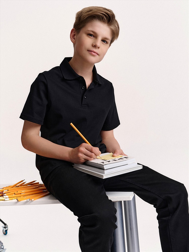 Поло из трикотажа с коротким рукавом — базовая и стильная вещь для мальчика Это поло — универсальная классика, которая всегда остаётся в моде и отлично подходит для школьного гардероба. Мягкий трикотаж комфортен, хорошо тянется и сохраняет форму, а короткие рукава делают его идеальным выбором для тёплой погоды и когда в школе жарко. Умеренный объём и аккуратный крой обеспечивают удобство и свободу движений в течение всего дня. Поло легко сочетать с брюками, джинсами или шортами — универсальный вариант для школы, прогулок и активного отдыха. Стильное, практичное и комфортное — это поло станет базовой и незаменимой частью гардероба вашего ребёнка. Выбирайте нужный размер по таблице размеров на фото. Цвет товара на экране вашего устройства может отличаться от цвета изделия вживую.