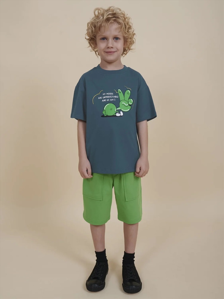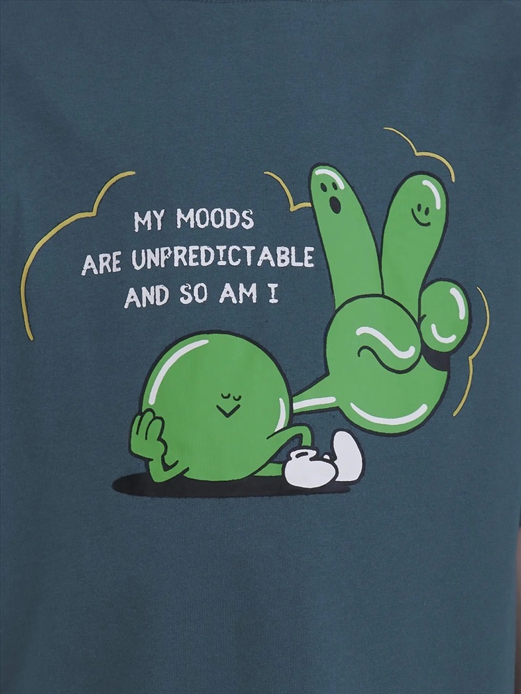Футболка для мальчика оверсайз – модель большого объема на каждый день, для дома и прогулок. Легкая трикотажная футболка подходит в качестве нательного белья и многослойных образов. Базовая футболка на любой сезон. Изделие сшито из 100% натурального хлопка, мягкий материал приятно прилегает к телу, не вызывая дискомфортных ощущений во время движений. Хлопок хорошо пропускает воздух, обеспечивает гигроскопичность. Материал не задерживает влагу - ребенок не потеет.Оптимальный размер горловины удобен в носке - позволит ребенку с легкостью надевать и снимать ее самостоятельно. Футболка для мальчика прослужит долго и будет радовать износостойкостью. Модель представлена в цвете морской волны. Синяя футболка для мальчика - красивый вариант на любой выход, по переду украшена надписью "My moods are unpredictable and so I am" – перевод "Мои настроения непредсказуемы, как и я сам". Свободная футболка для мальчика подростковая рассчитана на возраст садика и школы. Размерная линейка: 1 (86): 2 (92): 3 (98): 4 (104): 5 (110): 6 (116): 7 (122): 8 (128): 9 (134): 10 (140): 11 (146). Крутая футболка для мальчика – отличный подарок для сына, внука, братика, племянника, крестника! Выбирайте нужный размер по таблице размеров на фото. Цвет товара на экране вашего устройства может отличаться от цвета изделия вживую.