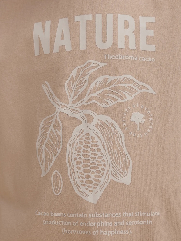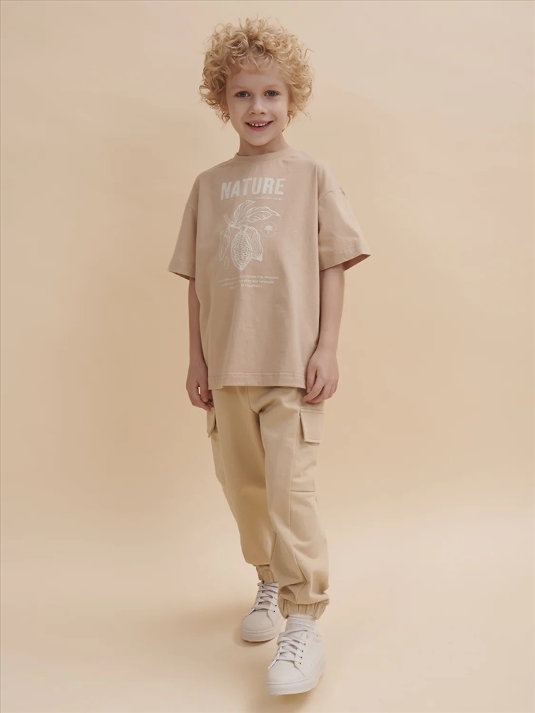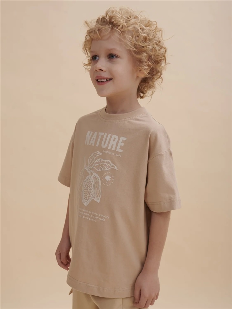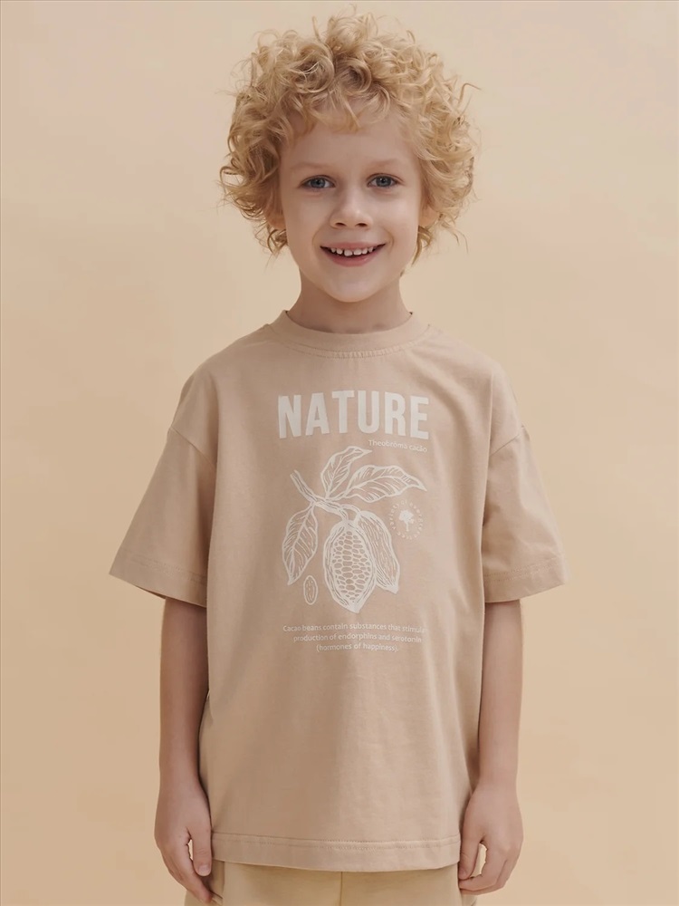 Футболка для мальчика оверсайз – модель большого объема на каждый день, для дома и прогулок. Легкая трикотажная футболка подходит в качестве нательного белья и многослойных образов. Базовая футболка на любой сезон. Изделие сшито из 100% натурального хлопка. Мягкий материал приятно прилегает к телу, не вызывая дискомфортных ощущений во время движений. Хлопок хорошо пропускает воздух, обеспечивает гигроскопичность. Материал не задерживает влагу - ребенок не потеет. Футболка для мальчика с оптимальным размером горловины удобна в носке - позволит ребенку с легкостью надевать и снимать ее самостоятельно, прослужит долго и будет радовать износостойкостью. Модель представлена в бежевом цвете. Оптимальный вариант на любой выход. Футболка для мальчика с принтом украшена изображением ветки шоколадного дерева и образовательным текстом: "Nature. Theobroma cacao. Variety of ever green tree. Cacao beans contain substances that stimulate production of endorphins and serotonin (harmones of happiness)" – перевод "Природа. Шоколадное дерево. Сорт вечнозеленого дерева. Какао бобы содержат вещества, стимулирующие выработку эндерфинов и серотонина". Прикольная, детская футболка для мальчика подростка с принтом привлекает стильным дизайном. Свободная футболка для мальчика подростковая рассчитана на возраст садика и школы. Размерная линейка: 1 (86): 2 (92): 3 (98): 4 (104): 5 (110): 6 (116): 7 (122): 8 (128): 9 (134): 10 (140): 11 (146). Крутая футболка для мальчика – отличный подарок для сына, внука, братика, племянника, крестника! Выбирайте нужный размер по таблице размеров на фото. Цвет товара на экране вашего устройства может отличаться от цвета изделия вживую.