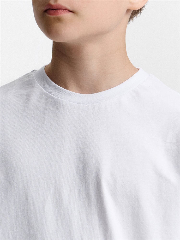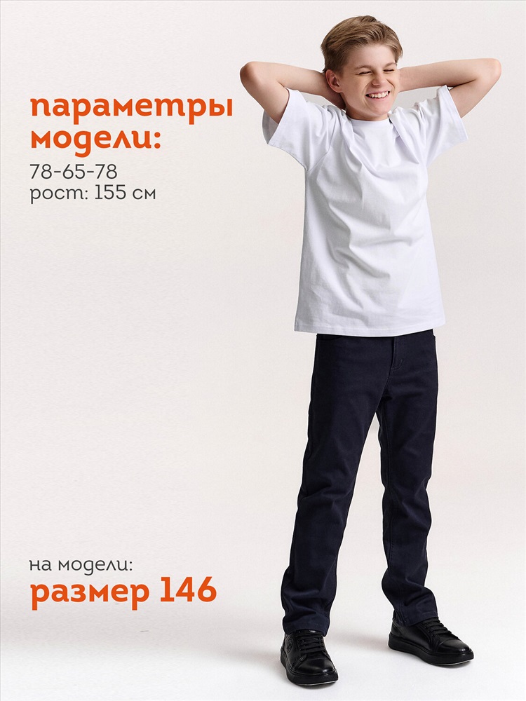 Белая футболка умеренного объёма — базовая и стильная вещь для мальчика Эта белая футболка — настоящая классика, которая всегда будет в моде и нужна в гардеробе каждого мальчика. Умеренный объём делает её удобной и комфортной — она не слишком тесная и не слишком свободная, идеально подходит для школы и активного дня. Базовый дизайн легко сочетать с любыми брюками, джинсами или шортами, а чистый белый цвет всегда смотрится аккуратно и свежо. Такая футболка — универсальный выбор не только для учебы, но и для прогулок, спорта и встреч с друзьями. Стильная, простая и практичная — эта футболка станет основой повседневного образа вашего ребёнка. Используйте таблицу размеров на фотографии, чтобы выбрать подходящий размер.