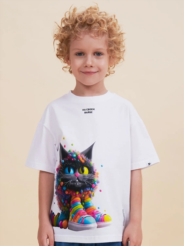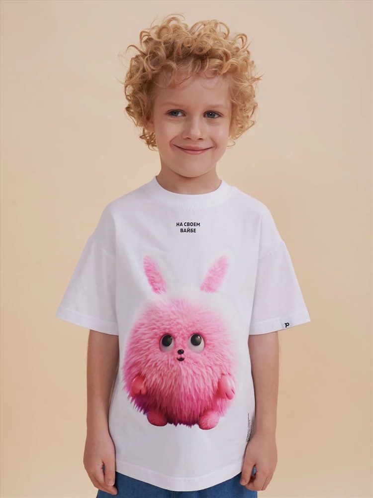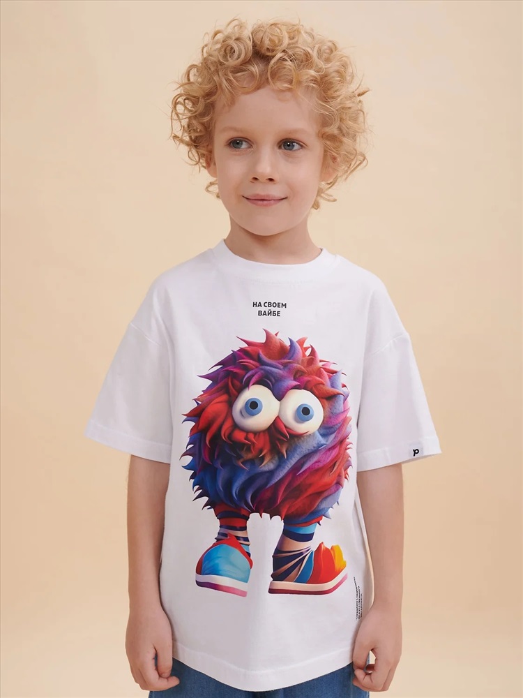 Детская футболка оверсайз. Комфортный джемпер свободного силуэта со спущенным плечом не будет стеснять движений ребёнка. Объёмная майка подарит ощущение комфорта и уюта. Вырез горловины отделан эластичной рибаной (ткань в рубчик) — она прекрасно держит форму, при этом ребёнку удобно надевать и снимать футболку. Модель неприхотлива в уходе. Главная фишка футболки — яркий стильный принт, изображающий персонажа, сгенерированного нейросетью (искусственным интеллектом). Это супермодный тренд! Футболка с прикольным принтом по переду выполнена из 100% высококачественного хлопка — изделие мягкое и воздухопроницаемое, что позволяет коже ребёнка свободно дышать. Принт эластичный и стойкий — без проблем переносит многочисленные стирки, не теряя своей яркости. На принте изображён забавный пушистый чудик розового цвета + надписи "на своём вайбе" и "создано с помощью искусственного интеллекта". Футболка оверсайз белая универсальна, подходит и для девочек, и для мальчиков. Как для малышей дошкольного и младшего школьного возраста, так и для подростков. Модель идеальна для детского сада, спорта, прогулок, отдыха, а также в качестве домашней одежды. В линейке представлены следующие размеры: 1 (86): 2 (92): 3 (98): 4 (104): 5 (110): 6 (116): 7 (122): 8 (128): 9 (134): 10 (140): 11 (146). Белые футболки подходят для носки летом, осенью и весной (демисезон), зимой в качестве среднего слоя одежды. Легко сочетается с различными брюками, джинсами, юбками, легинсами и шортами. Футболка с принтом оверсайз — стильный и красивый подарок сыну, дочери, внуку или внучке на любой праздник. Выбирайте нужный размер по таблице размеров на фото. Цвет товара на экране вашего устройства может отличаться от цвета изделия вживую.