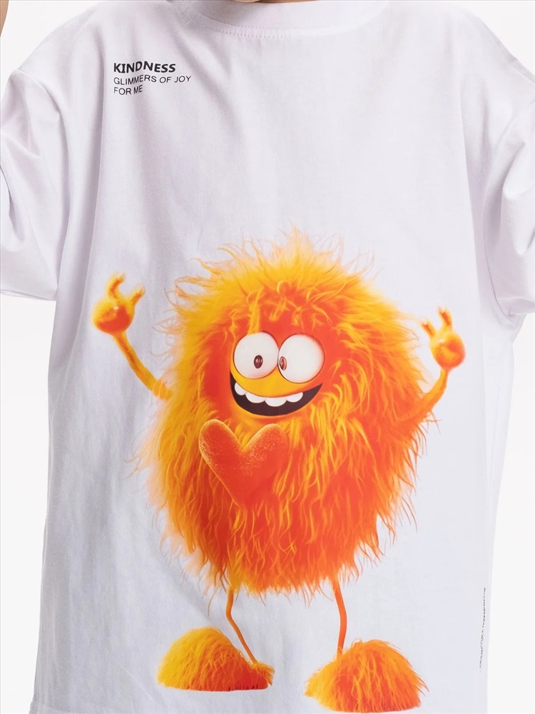 Детская футболка унисекс среднего объема. Прикольная нарядная футболка свободного силуэта со спущенным плечом не будет стеснять движений ребёнка. Вырез горловины отделан эластичной рибаной - голова не застрянет. Главная фишка футболки — яркий милый принт, изображающий персонажа, сгенерированного нейросетью (искусственным интеллектом). Это супермодный тренд! Принт эластичный и стойкий — без проблем переносит многочисленные стирки, не теряя своей яркости. На принте изображён забавный пушистый чудик (монстрик) оранжевого цвета + надписи "доброта", "искры радости для меня" и "создано с помощью искусственного интеллекта". Широкая размерная сетка позволяет приобрести такую футболку как малышу в детский садик так и подростку. . Белые футболки подходят для носки летом, осенью и весной (демисезон), а также зимой . Цвет товара на экране вашего устройства может отличаться от цвета изделия вживую.