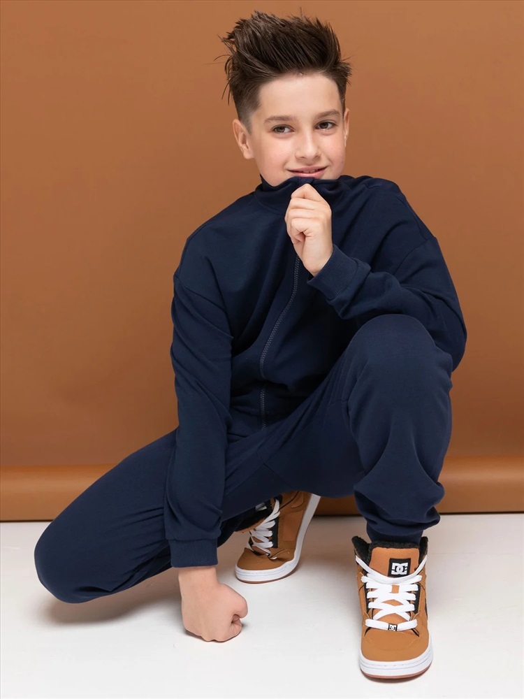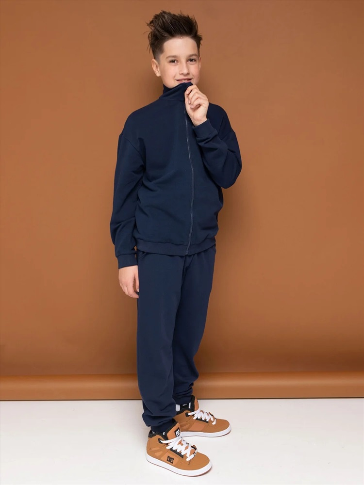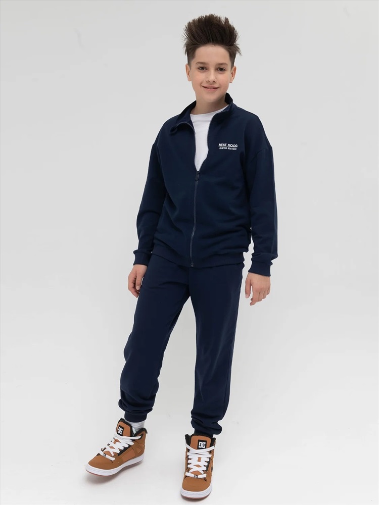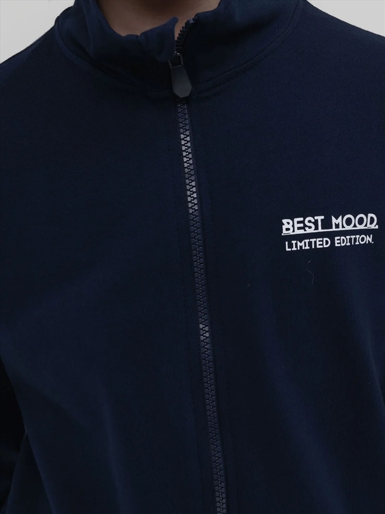 Трикотажный костюм для мальчика из эластичного футера. Не мнётся, не растягивается и подходит для любого типа фигуры. Объем брюк регулируется по талии. Можно брать на вырост. Прыжки, бег, занятия спортом, любые активные движения в этом костюме не будут стеснять движения. Пластиковая молния не боится потери зубчиков, а металлический бегунок готов к постоянной эксплуатации. Стильная фишка костюма: текстовый принт Best mood (перевод Лучшее настроение)