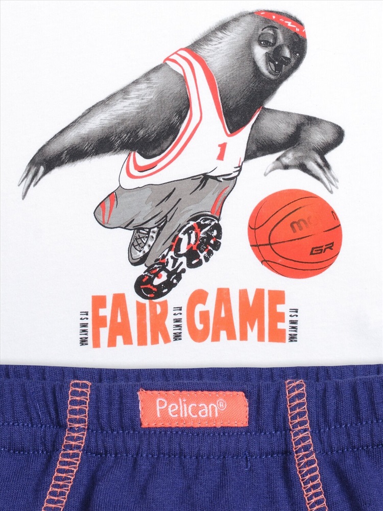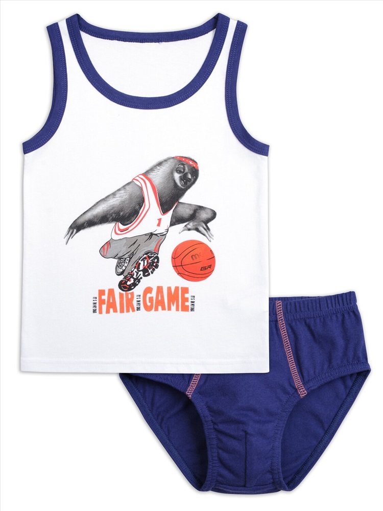 Производитель: PELICAN; Артикул поставщика: BUAVL3225; Состав: верх- 100%хлопок, низ- 100%хлопок; Сезон: Осень, Весна; Год: 2021; Российский размер: 86; Рост: 86; Возраст: 1; Обхват груди: 48; Обхват талии: 48; Обхват бедер: 51 Комплект для мальчиков майка и трусы. Классическая майка на широких лямках. Плавки с декоративной отстрочкой в области гульфика.