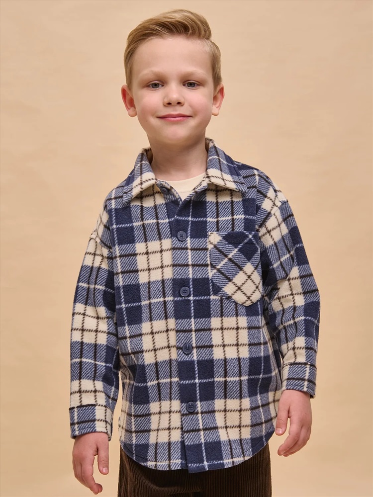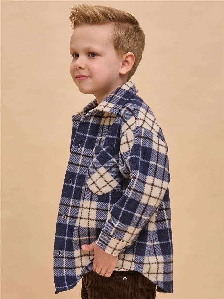 Флисовая рубашка для мальчика. Объёмная рубашка с классическим отложным воротником и спущенным плечом подарит ребёнку комфорт и станет стильным дополнением гардероба. Клетчатая рубашка оверсайз — актуальный модный тренд. Модель застёгивается на пуговицы по переду. По низу рукавов манжеты на пуговицах. По переду слева накладной карман для мелочей. Линия низа фигурная, спинка слегка длиннее переда. Изделие лаконичного дизайна, без принта. Рубашка неприхотлива в уходе. Флис тёплый, мягкий, лёгкий, просто стирается и быстро сохнет, не выгорает и не скатывается, одежда из него надолго сохраняет прекрасную форму. Рубашка оверсайз в клетку выполнена в универсальной расцветке — легко сочетается с различными брюками, джинсами. Идеальная рубашка в клетку для мальчика дошкольного и младшего школьного возраста, а также подростка. Рубашка утеплённая заменит ветровку в прохладную погоду, а зимой послужит тёплым средним слоем одежды. Её можно носить в детский сад, на прогулки, отдых, а также дома. Помните о правильном уходе за изделием: рекомендуется стирать при температуре не выше 30 °C, без предварительного замачивания, с изнанки. Это поможет сохранить качество и цвет рубашки на длительное время. Не забывайте о выборе правильного размера. Используйте таблицу размеров на фотографии, чтобы выбрать подходящий вариант для вашего мальчика. Обратите внимание, что цвет товара на экране вашего устройства может отличаться от реального.