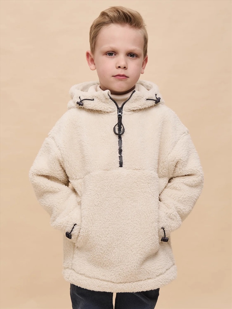 Состав: 100%полиэстер Толстовка из плюшевого флиса для мальчика. Похожий на пушистый мех, флис укутывает и согревает ребенка даже в дождливую погоду. Изделие приятно носить, за ним легко ухаживать. Свободный крой обеспечивает комфорт и удобство в динамике. Тракторная молния – прочная, долго не ломается. Защита подбородка тканевым ограничителем – ребенок не поранится. Мягкий, объемный капюшон – дополнительное тепло. Объем капюшона и ширина рукавов понизу регулируются эластичным шнуром со стопперами. Карман-кенгуру с комфортным входом для рук – важные мелочи всегда при себе. Составляет гармоничный дуэт с любыми брюками. Толстовка не просто подходит для стильного повседневного образа – его хочется носить каждый день.