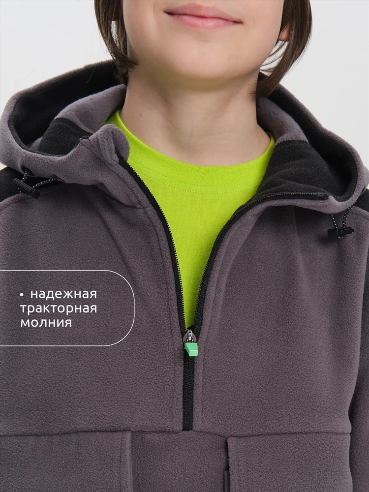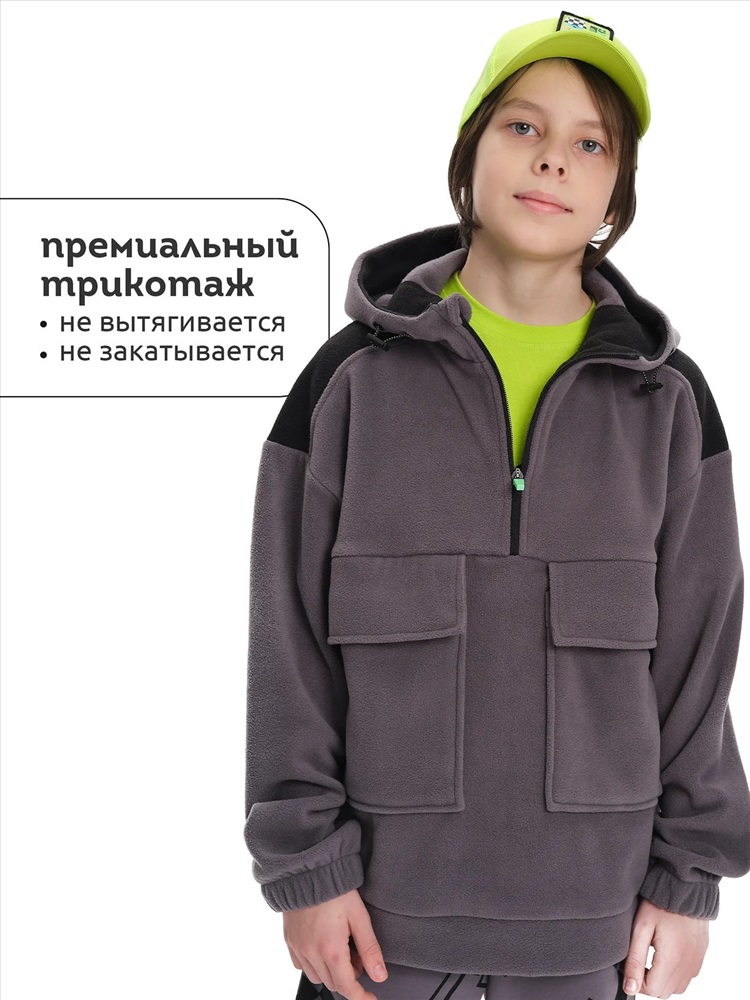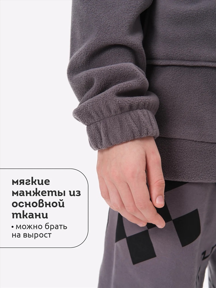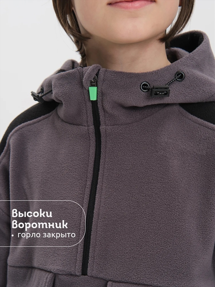 Толстовка флисовая для мальчика. Кофта теплая объемная со спущенным плечом заменит ветровку в прохладную погоду весной и осенью. Высокий воротник-стойка с утяжкой защитит от холода и ветра. Толстовка застёгивается на короткую молнию — актуальный модный тренд и оснащена накладными карманами для нужных мелочей. Модель выполнена из 100% полиэстера — она лёгкая, мягкая, износостойкая, просто стирается и быстро сохнет. На рукавах манжеты из основной ткани, она в меру растягивается и кофту легко надевать. Широкий размерный ряд позволяет приобрести эту флиску как годовалым малышам так и подросткам. Помните о правильном уходе за изделием: рекомендуется стирать при температуре не выше 30 °C, без предварительного замачивания, с изнанки. Это поможет сохранить качество и цвет изделия на длительное время.