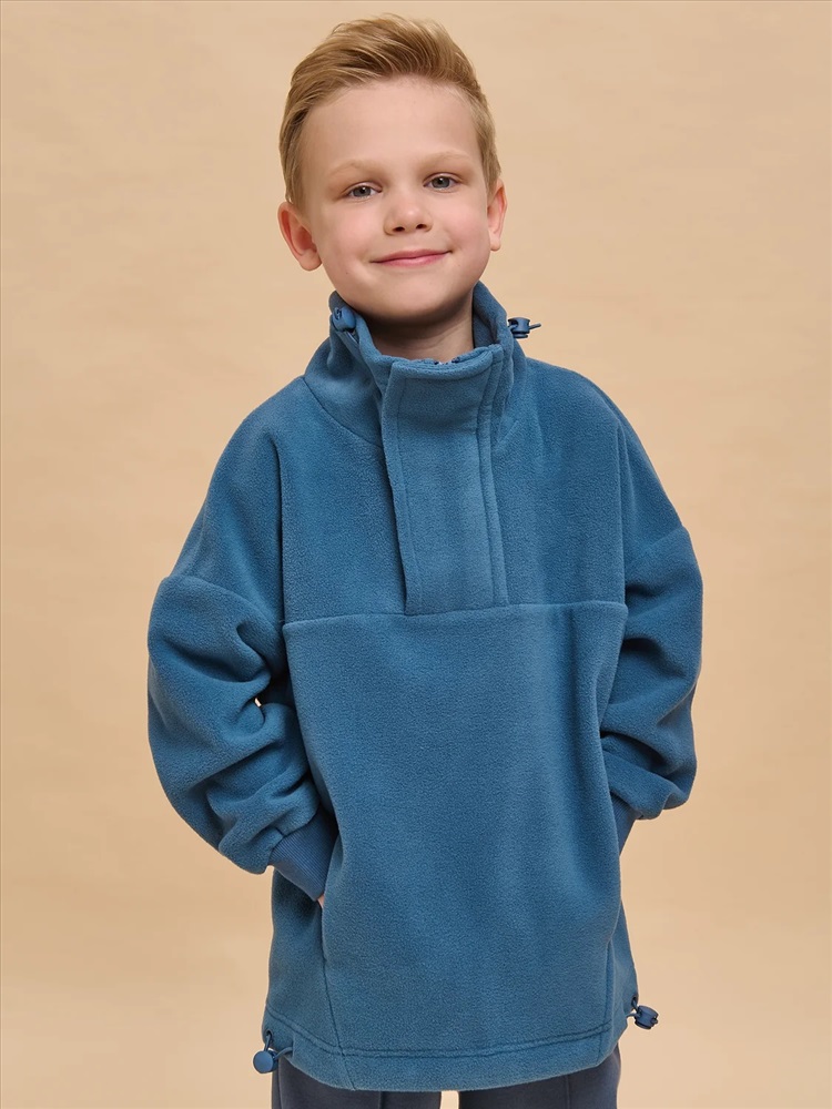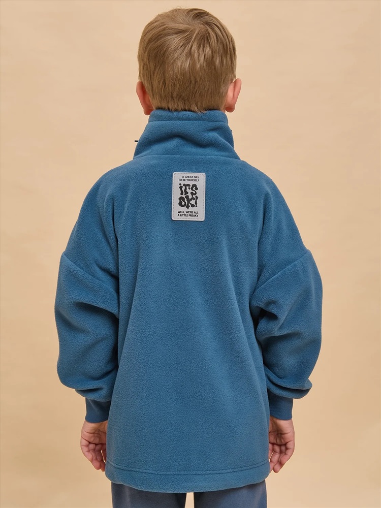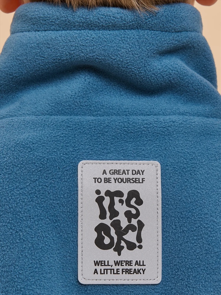 Толстовка детская для мальчиков. Куртка увеличенного объёма со спущенным плечом из мягкого и тёплого флиса заменит ветровку в прохладную погоду. Высокий воротник-стойка с утяжкой защитит от холода и ветра. Толстовка флисовая застёгивается на короткую молнию — актуальный модный тренд. Поверх молнии планка на липучке (велькро) — толстовку просто и удобно надевать и снимать. Модель выполнена из 100% полиэстера — она лёгкая, мягкая, износостойкая, просто стирается и быстро сохнет. На рукавах манжеты из эластичной рибаны, она не растягивается и надолго сохраняет отличный внешний вид. По низу куртка детская дополнена эластичным шнуром с пластиковыми фиксаторами для регулировки ширины. В боковых швах удобные караманы. Толстовка для мальчика на молнии декорирована светоотражающей нашивкой на спинке — безопасность в тёмное время суток. Надписи на нашивке переводятся: «хороший день, чтобы быть собой», «всё окей!», «все мы немного странные». Уютная и стильная куртка для мальчика неприхотлива в уходе. Помните о правильном уходе за изделием: рекомендуется стирать при температуре не выше 30 °C, без предварительного замачивания, с изнанки. Это поможет сохранить качество и цвет толстовки на длительное время. Не забывайте о выборе правильного размера. Используйте таблицу размеров на фотографии, чтобы выбрать подходящий вариант для вашего мальчика. Обратите внимание, что цвет товара на экране вашего устройства может отличаться от реального.