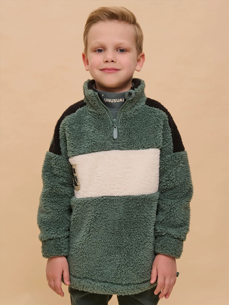 Толстовка детская для мальчиков. Трикотажная куртка увеличенного объёма из мягкого двустороннего материала берберфлис заменит ветровку в прохладную погоду. Толстовка флисовая застёгивается на короткую молнию — актуальный модный тренд. Модель выполнена из 100% полиэстера — она лёгкая, мягкая, износостойкая, просто стирается и быстро сохнет. Высокий воротник с защитным ограничителем и широкие манжеты защитят от холода и ветра. По низу куртка детская дополнена эластичным шнуром со стоперами для регулировки ширины. Толстовка для мальчика на молнии декорирована контрастными вставками по переду, плечам и внутренней части воротника. Уютная и стильная куртка для мальчика неприхотлива в уходе. Помните о правильном уходе за изделием: рекомендуется стирать при температуре не выше 30 °C, без предварительного замачивания, с изнанки. Это поможет сохранить качество и цвет куртки на длительное время. Не забывайте о выборе правильного размера. Используйте таблицу размеров на фотографии, чтобы выбрать подходящий вариант для вашего мальчика. Обратите внимание, что цвет товара на экране вашего устройства может отличаться от реального.