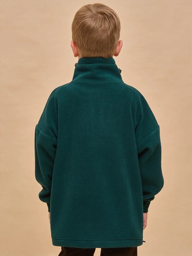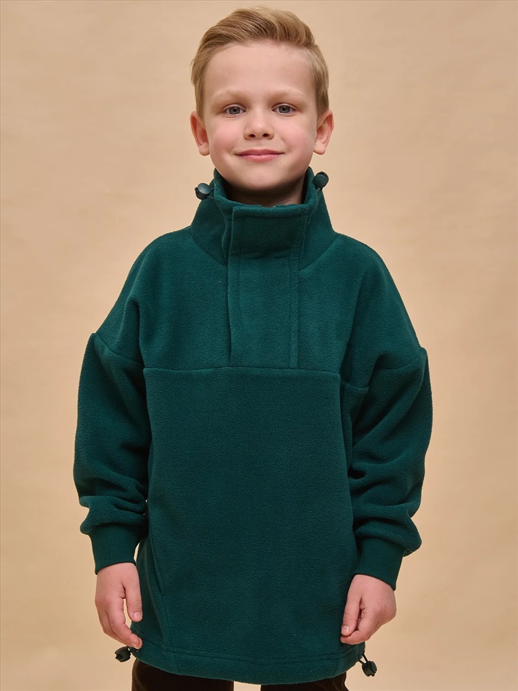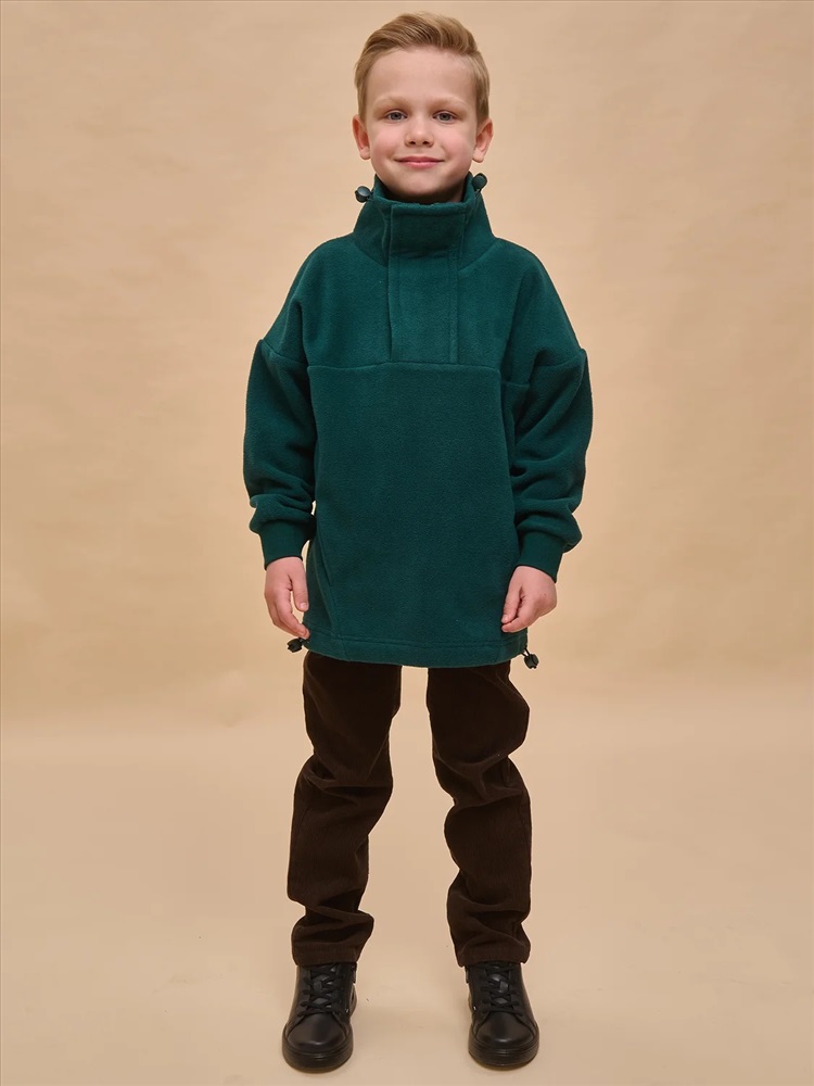 Толстовка детская для мальчиков. Куртка увеличенного объёма со спущенным плечом из мягкого и тёплого флиса заменит ветровку в прохладную погоду. Высокий воротник-стойка с утяжкой защитит от холода и ветра. Толстовка флисовая застёгивается на короткую молнию — актуальный модный тренд. Поверх молнии планка на липучке (велькро) — толстовку просто и удобно надевать и снимать. Модель выполнена из 100% полиэстера — она лёгкая, мягкая, износостойкая, просто стирается и быстро сохнет. На рукавах манжеты из эластичной рибаны, она не растягивается и надолго сохраняет отличный внешний вид. По низу куртка детская дополнена эластичным шнуром с пластиковыми фиксаторами для регулировки ширины. В боковых швах удобные караманы. Толстовка для мальчика на молнии лаконичного дизайна, без принтов, её легко сочетать с любыми брюками, джинсами. Надпись на нашивке переводится: «привет из будущего». Уютная и стильная куртка для мальчика неприхотлива в уходе. Помните о правильном уходе за изделием: рекомендуется стирать при температуре не выше 30 °C, без предварительного замачивания, с изнанки. Это поможет сохранить качество и цвет толстовки на длительное время. Не забывайте о выборе правильного размера. Используйте таблицу размеров на фотографии, чтобы выбрать подходящий вариант для вашего мальчика. Обратите внимание, что цвет товара на экране вашего устройства может отличаться от реального.