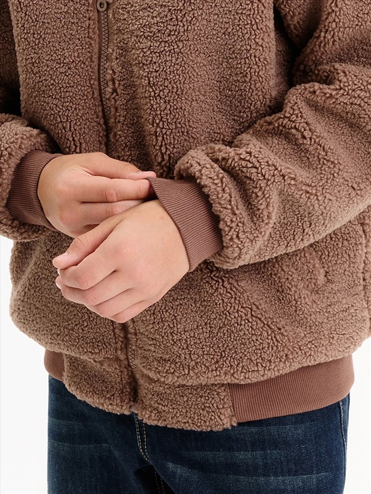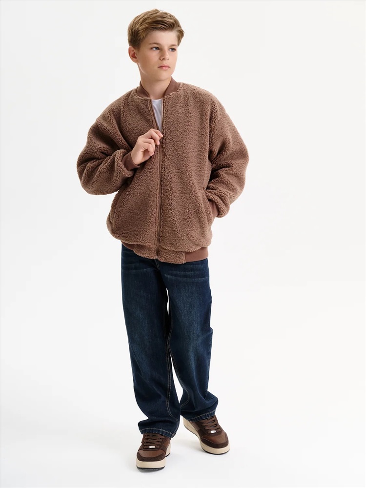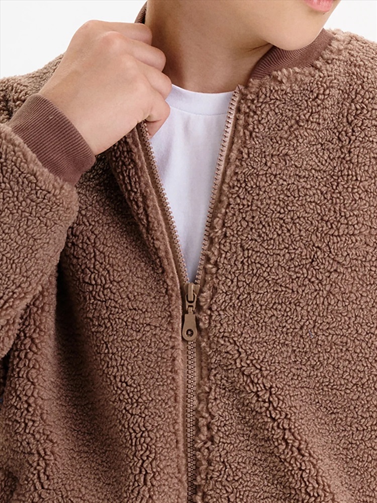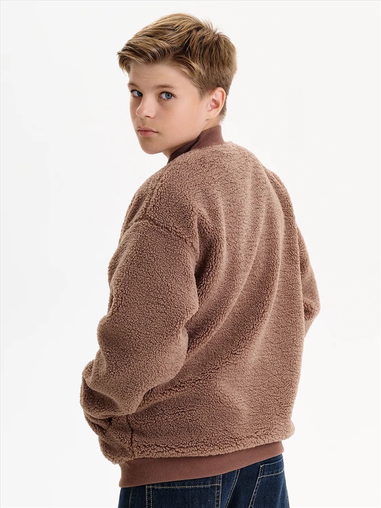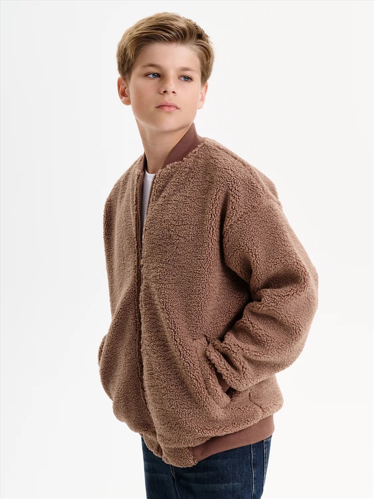 Трикотажный бомбер из бербер-флиса. Такой флис еще называют тедди, чебурашка, барашек. Мягкая кофта оверсайз застегивается на молнию. По переду два глубоких прорезных кармана. Воротник, манжеты рукавов и манжет низа выполнены из декоративной рибаны. Плюшевая толстовка из искусственного меха утеплена флисовым подкладом, благодаря чему ее можно носить в прохладную погоду весной и осенью. Универсальные цвета подойдут для повседневной носки в школу и на прогулку. Широкая размерная линейка подойдет как малышам так и подросткам.