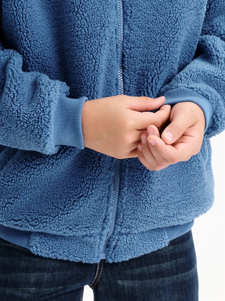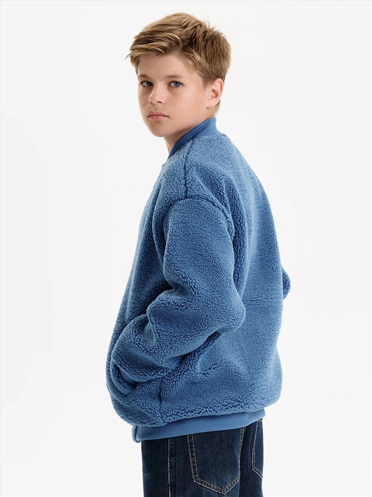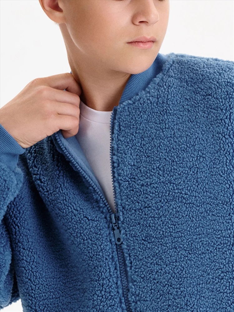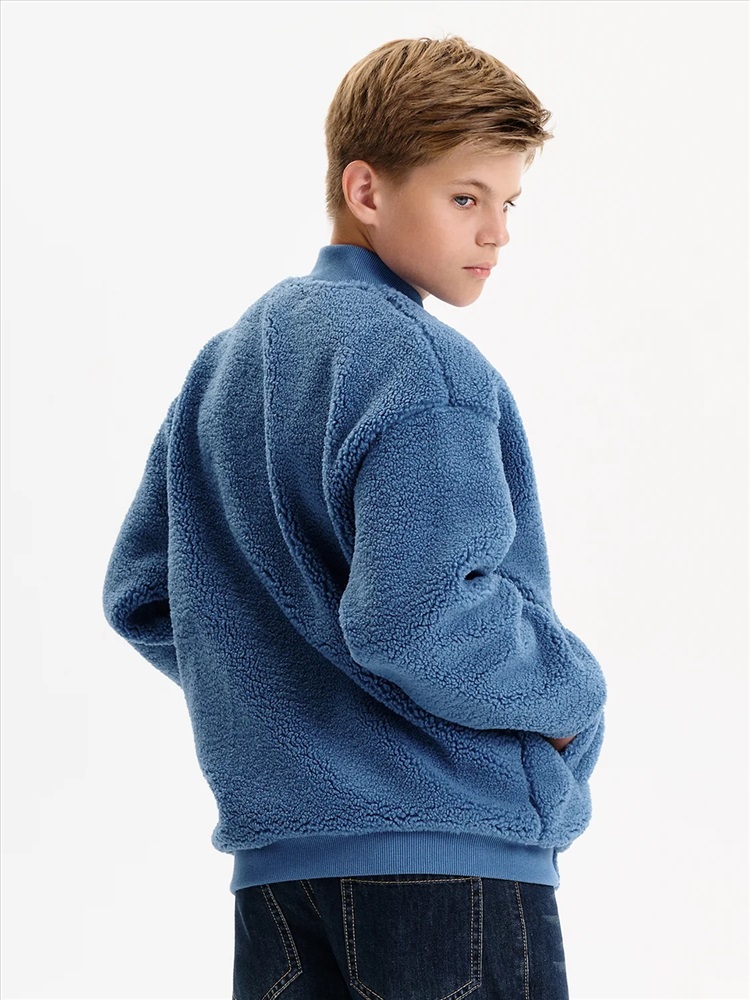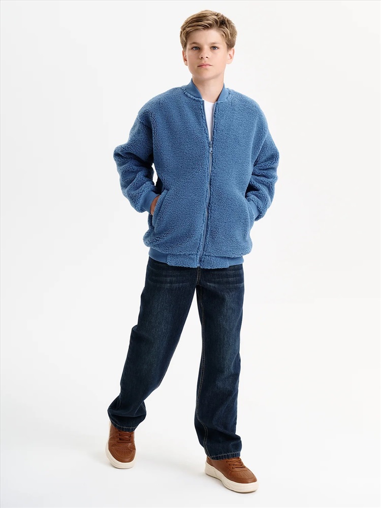 Трикотажный бомбер из бербер-флиса. Такой флис еще называют тедди, чебурашка, барашек. Мягкая кофта оверсайз застегивается на молнию. По переду два глубоких прорезных кармана. Воротник, манжеты рукавов и манжет низа выполнены из декоративной рибаны. Плюшевая толстовка из искусственного меха утеплена флисовым подкладом, благодаря чему ее можно носить в прохладную погоду весной и осенью. Универсальные цвета подойдут для повседневной носки в школу и на прогулку. Широкая размерная линейка подойдет как малышам так и подросткам.