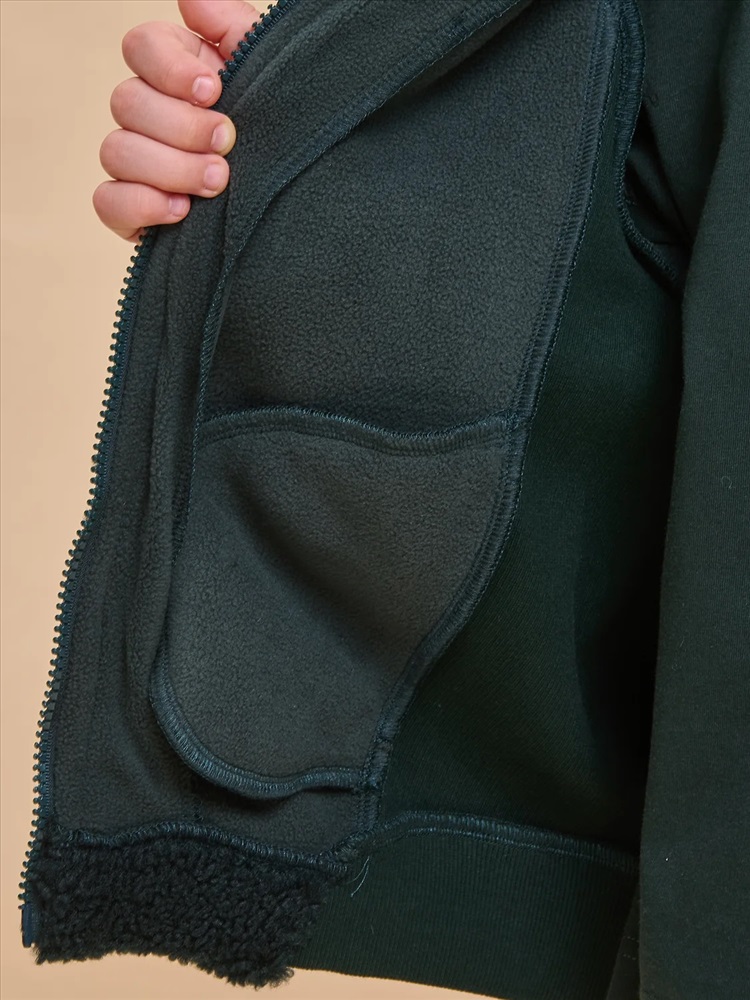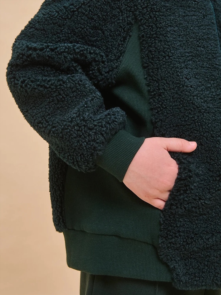 Детская куртка на мальчика выполнена из мягкого бербер-флиса (фактура «барашка»). Куртка актуального оверсайз-силуэта с рукавами кроя реглан подарит ребёнку комфорт и не будет сковывать его движений. По бокам оригинальные вставки из плотной эластичной рибаны. Сочетание материалов с разной фактурой — один из трендов сезона. Капюшон защищает ребёнка от холода и ветра. Оверсайз-куртка удобно застёгивается на молнию по переду, вверху молнии ограничитель для безопаного застёгивания. В швах по переду расположены боковые карманы. Окантовка капюшона, манжеты рукавов и частично манжета по низу изделия выполнены из эластичной рибаны — она на 95% состоит из качественного хлопка. Эластан помогает рибане не растягиваться, сохранять отличную форму долго. Худи однотонное, без принта. Модель неприхотлива в уходе. Одежда из флиса тёплая, лёгкая, мягкая, просто стирается и быстро сохнет, не выгорает и не скатывается, сохраняет прекрасную форму надолго. Толстовка детская выполнена в универсальном чёрном цвете. Она отлично сочетается с различными брюками. Размерная линейка: 1 (86): 2 (92): 3 (98): 4 (104): 5 (110): 6 (116): 7 (122): 8 (128): 9 (134): 10 (140): 11 (146). Мягкая куртка подходит малышам, мальчикам дошкольного и младшего школьного возраста, а также подросткам. Его можно носить в детский сад, школу, на прогулки, оно идеально для активного отдыха и спорта, а также для дома. Подходит для круглогодичной носки: прохладным летом, осенью, зимой, весной и демисезон. Стильный и практичный подарок сыну, брату, внуку или племяннику на Новый год и любой другой праздник.