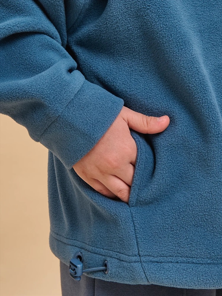Оверсайз-толстовка на мальчика. Объёмный жакет со спущенным плечом подарит ребёнку комфорт и свободу движения. Застёжка на центральную молнию спереди. Толстовка на замке выполнена из флиса. Накладной карман на груди и декоративные детали — из гладкой курточной ткани. Сочетание материалов разных фактур — модный тренд сезона. По низу изделия предусмотрена утяжка для регулировки ширины. Толстовка с воротником-стойкой, который защищает шею от холода и ветра. Модель однотонная, без принта. Изделие неприхотливо в уходе. Одежда из флиса тёплая, лёгкая, мягкая, просто стирается и быстро сохнет, не выгорает и не скатывается, сохраняет первозданную форму в течение длительного времени. Зип-толстовка выполнена в актуальном синем цвете. Карманы в боковых швах - удобно пользоваться. В линейке представлены следующие размеры: 1 (86): 2 (92): 3 (98): 4 (104): 5 (110): 6 (116): 7 (122): 8 (128): 9 (134): 10 (140): 11 (146). Синяя толстовка подходит маленьким мальчикам, младшим школьникам и подросткам. Она идеальна для детского сада, прогулок, отдыха, а также для дома. Толстовку можно носить круглогодично: летом, осенью, зимой, весной и демисезон. Её просто комбинировать с различными брюками. Это отличный подарок сыну, внуку, брату или племяннику на Новый год и любой другой праздник.