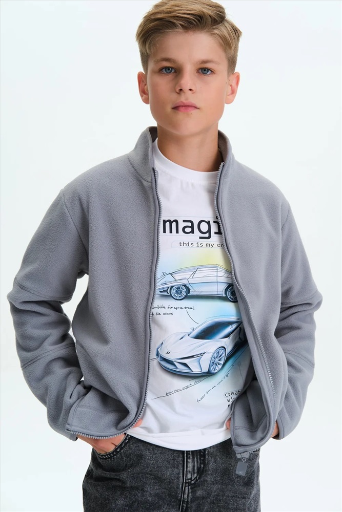 Флисовая зипка прямого силуэта — удобная, тёплая и универсальная вещь, сочетающая в себе комфорт толстовки и функциональность поддевы. Её можно носить как самостоятельный слой, так и под куртку или комбинезон. Благодаря компактному объему и чуть расширенной линии плеч, кофта не сковывает движения и хорошо сидит на ребёнке. Мягкий флис приятен к телу, отлично сохраняет тепло, быстро сохнет и легко стирается — мамам не придётся тратить много времени на уход. Модель продумана до мелочей: удобная молния, воротник-стойка, фигурные боковые карманы с аккуратной отделкой трикотажным кантом. Декоративные строчки на рукавах и спинке подчёркивают качество пошива. Практичная, лёгкая и тёплая — зипка станет незаменимой в гардеробе ребёнка. Широкая размерная линейка подойдет как малышам так и подросткам.
