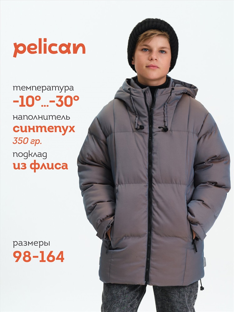 Производитель: PELICAN; Российский размер: 98; Рост: 98; Возраст: 3; Обхват груди: 52; Обхват талии: 48; Обхват бедер: 54; Длина рукава: 32-34; Обхват шеи: 27; Артикул поставщика: BZWZ3377; Состав: 68%нейлон 32%полиэстер, подклад- 100%полиэстер утеплитель- экопух 100%полиэстер; Сезон: Осень, Зима; Год: 2025 Куртка для мальчиков