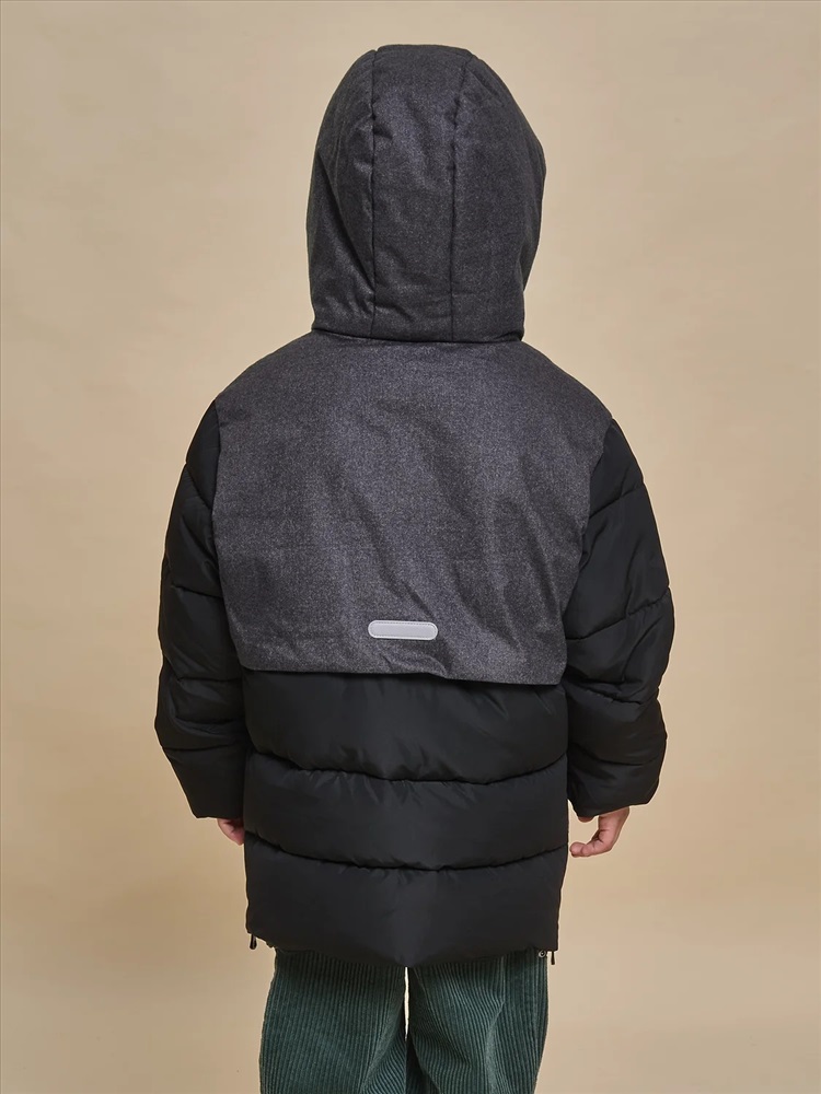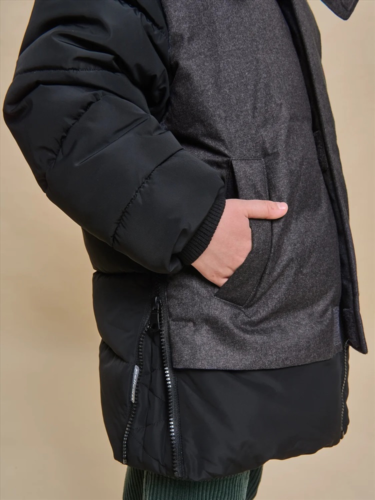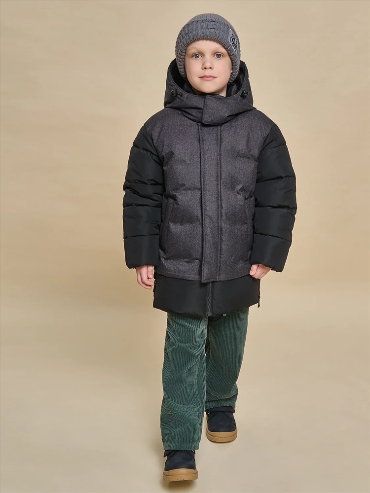 Теплая детская куртка для мальчика с капюшоном, оверсайз зимняя. Лучшая верхняя одежда детского гардероба для зимы. Удлиненная, прямого силуэта, качественная и крепкая двухсторонняя молния для возможности расстегнуть снизу сидя, с защитой подбородка от повреждений кожи. Замок не боится частого использования. Комфортная ветрозащитная планка. Мягкая линия плеч, трикотажная эластичная манжета рукава внутри с резинкой не позволит растянуться и деформироваться в процессе носки. Капюшон разработан с учетом всех анатомических линий, с регулировкой шнуром, глубина сзади рассчитана на объем шапки. Специальная форма уступов капюшона не провисает, высоко и плотно закрывая шею и лицо защищая от ветра. Липучка пришита в особом положении, благодаря чему застегивается под любым углом, выполнена из новейшего материала, который не теряет свойств со временем. Прочные швы дают свободу в движениях, можно двигаться без ограничений. Утепленная куртка для ребенка настолько прочная, что выдержит любые активные детские игры на улице.