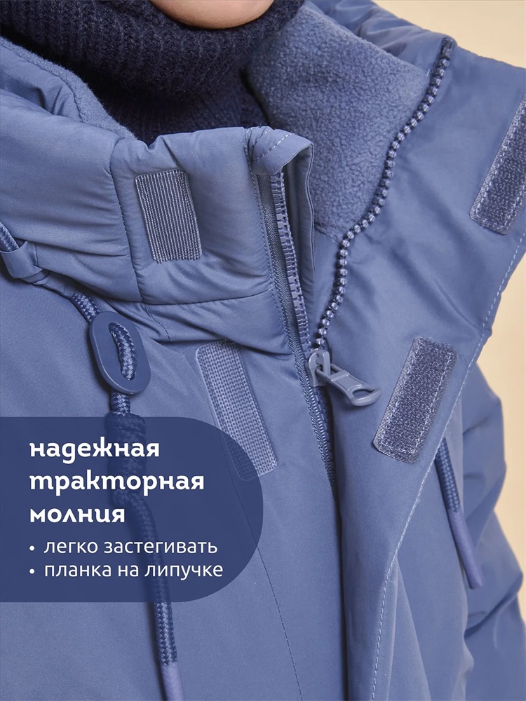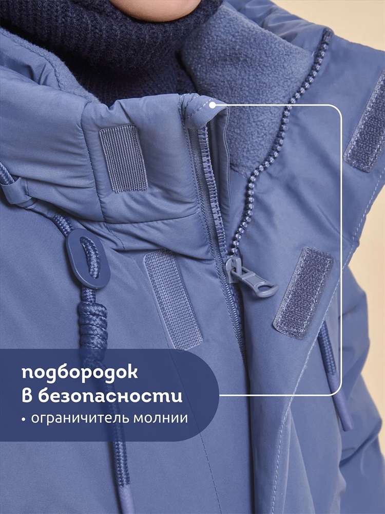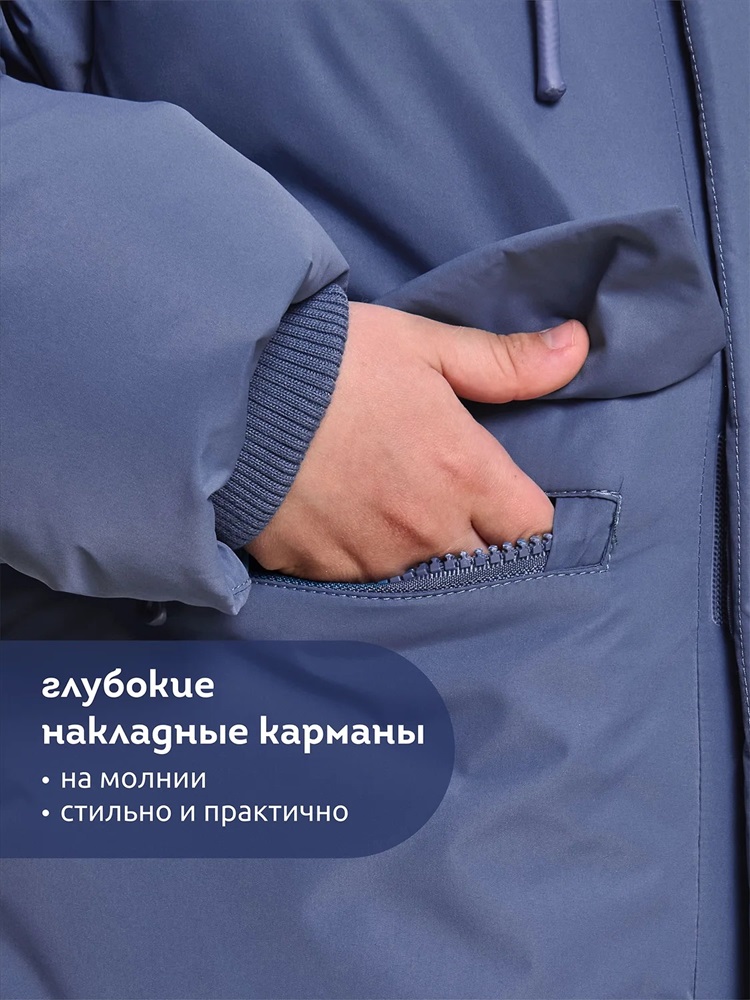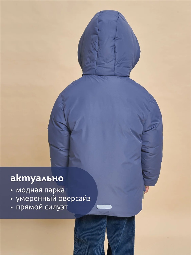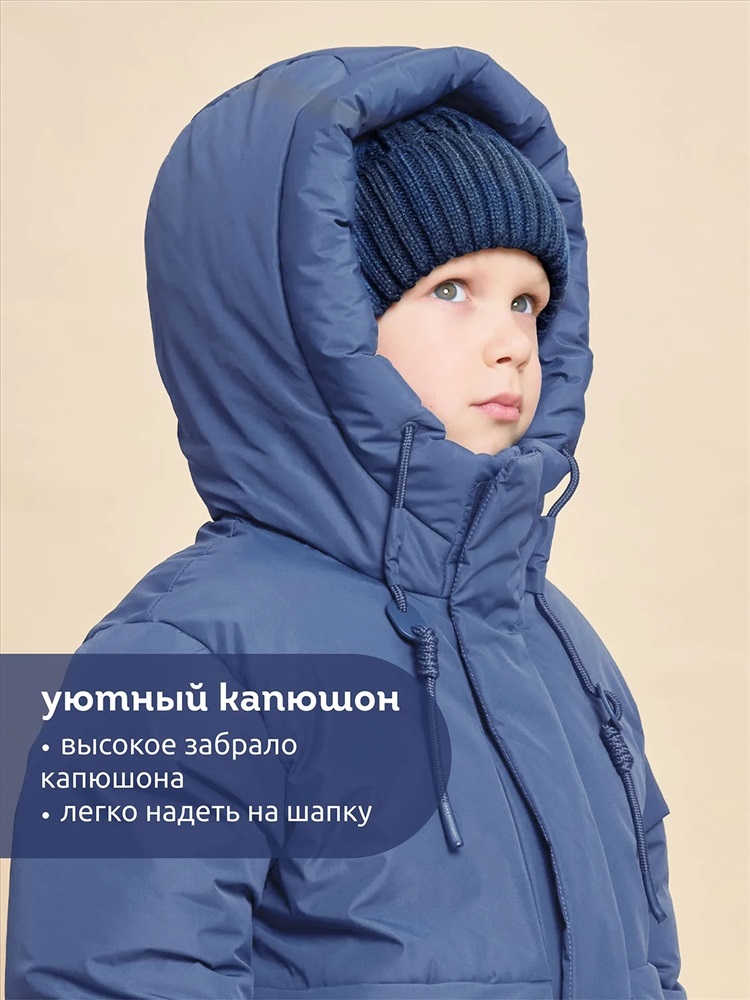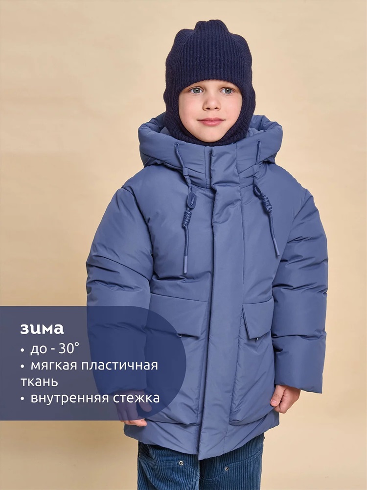 Куртка зимняя для мальчика. Модель прямого силуэта, объем - умеренный оверсайз. Куртка гладкая, без стёжки — суперактуальный тренд сезона. При этом утеплитель простёган внутри изделия — он равномерно распределён и надёжно зафиксирован. На внешнюю поверхность материала нанесена водоотталкивающая пропитка (DWR), она задерживает грязь и влагу снаружи — ребёнок не промокнет от снега, а комбинезон легко отстирается. Также есть дополнительная пропитка на внутренней стороне ткани — для более надёжной защиты от промокания. Капюшон с двумя швами, что обеспечивает анатомически правильную форму и комфортную посадку по голове. Легко одевается на шапку. Высокое забрало капюшона защищает шею и лицо от холода и ветра. Горло закрыто, шарф не нужен. Объём капюшона регулируется эластичным шнуром со стопперами. Центральная застёжка на пластиковую тракторную молнию, разъёмную с двух сторон — удобно садиться, пуллеры металлические, прочные. Сверху планка на велькро (липучках) — быстро застёгивается и расстёгивается. Куртка теплая — центральная молния с изнаночной стороны дополнительно закрыта ветрозащитной планкой. В рукавах внутренние манжеты из эластичной рибаны для защиты от холода и ветра. Рибана приятна на ощупь и при этом надолго сохраняет эластичность, не теряет форму. По переду объёмные накладные карманы с клапанами, закрываются на молнию. Внутренний карман на молнии для важных мелочей. В каждой куртке есть нейм-лейбл! Ребенок не потеряется и не потеряет куртку! В боковых швах и на спинке расположены светоотражающие элементы — безопасность в тёмное время суток. Модель без принта. Зимняя куртка с наполнителем из полиэстера — она тёплая, лёгкая, без проблем стирается, быстро сохнет, сохраняет отличную форму и цвет надолго. Мягкая флисовая подкладка добавляет дополнительную теплоту изделию во время холодов. В рукавах подкладка из гладкого полиэстера для лёгкости надевания. Отличная куртка для мальчика дошкольного и младшего школьного возраста, а также подростка. Идеальный, тёплый и стильный зимний пуховик. Рекомендуемый температурный режим: не ниже минус 30 градусов. Утеплитель: экопух. Куртка водоотталкивающая утеплённая подходит для носки в детский сад, школу, для прогулок и активного зимнего отдыха, игр на воздухе. Помните о правильном уходе за изделием: рекомендуется стирать при температуре не выше 30 °C, без предварительного замачивания, с изнанки. Это поможет сохранить качество и цвет куртки на длительное время. Не забывайте о выборе правильного размера. Используйте таблицу размеров на фотографии, чтобы выбрать подходящий вариант для вашего мальчика. Обратите внимание, что цвет товара на экране вашего устройства может отличаться от реального.