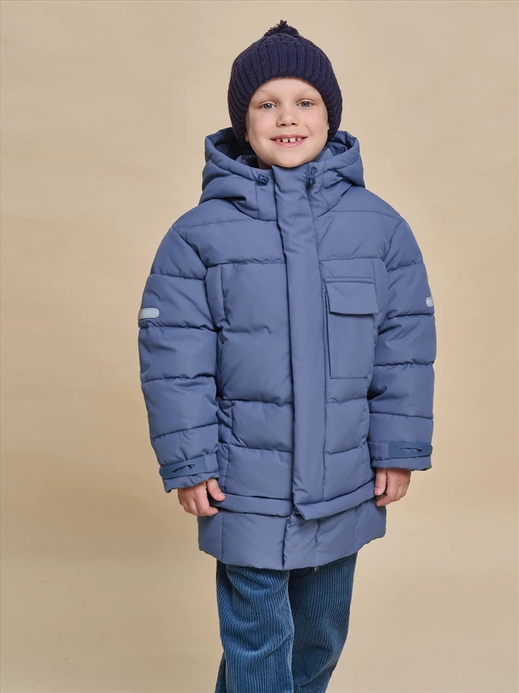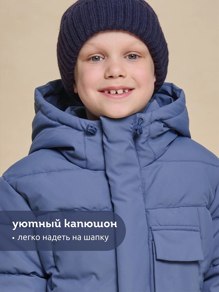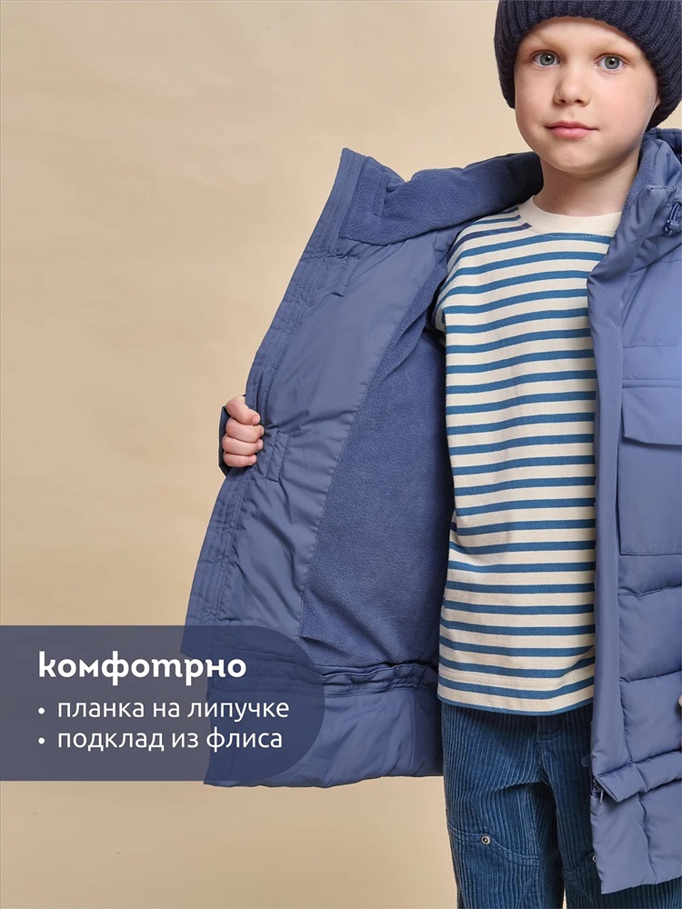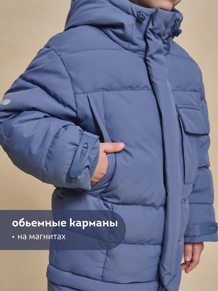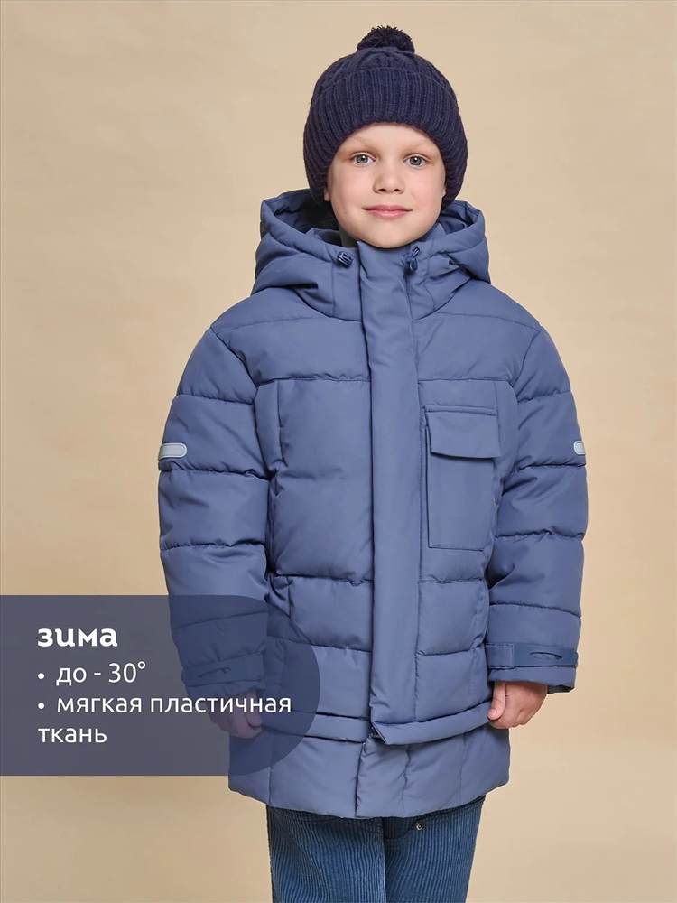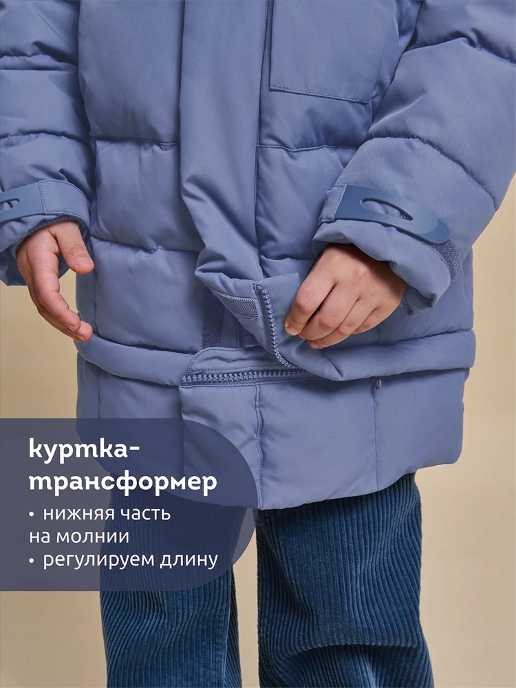 Куртка зимняя для мальчика с горизонтальной стёжкой. На внешнюю поверхность материала нанесена водоотталкивающая пропитка (DWR), она задерживает грязь и влагу снаружи — ребёнок не промокнет, есть дополнительная пропитка на внутренней стороне ткани. Куртка прямого оверсайз-силуэта. Капюшон не отстегивается. Внутренние манжеты рукавов из рибаны — защита от ветра и холода. Куртка-трансформер с отстегивающейся нижней частью. Модель имеет две длины: короткая (до подъягодичной складки) и средняя (до середины бедра). Капюшон с двумя швами, что обеспечивает анатомически правильную форму и комфортную посадку по голове. Легко одевается на шапку. Капюшон застёгивается на липучку (велькро), объём реглируется эластичным шнуром со стопперами. Высокий воротник-стойка, утепленный синтепоном и флисом на внутренней стороне, защищает шею от холода и ветра. Горло закрыто, шарф не нужен. Центральная застёжка на пластиковую тракторную молнию, разъёмную с двух сторон — удобно садиться, пуллеры металлические, прочные. Сверху планка на велькро (липучках) — быстро застёгивается и расстёгивается. Куртка теплая — центральная молния с изнаночной стороны дополнительно закрыта ветрозащитной планкой. В рукавах внутренние манжеты из эластичной рибаны для защиты от холода и ветра. Рибана приятна на ощупь и при этом надолго сохраняет эластичность, не теряет форму. По низу рукавов снаружи силиконовая пата на липучке (велкро) - можно регулировать ширину рукава. В каждой куртке есть нейм-лейбл! Ребенок не потеряется и не потеряет куртку! Пуховик на мальчика с прорезными карманами на уровне груди с магнитными застёжками. Карманы утеплены флисом. Накладной карман на липучке. На спинке расположены светоотражающие элементы — безопасность в тёмное время суток. Ухаживать за курткой необходимо согласно указанным на вшивных ярлыках рекомендациям. Модель без принта. Зимняя куртка выполнена из полиэстера — она тёплая, лёгкая, без проблем стирается, быстро сохнет, сохраняет отличную форму и цвет надолго. Мягкая флисовая подкладка добавляет дополнительную теплоту изделию во время холодов. В рукавах подкладка из гладкого полиэстера для лёгкости надевания. Отличная куртка для мальчика дошкольного и младшего школьного возраста, а также подростка. Идеальный, тёплый и стильный зимний пуховик. Рекомендуемый температурный режим: не ниже минус 30 градусов. Утеплитель: экопух. Куртка водоотталкивающая утеплённая подходит для носки в детский сад, школу, для прогулок и активного зимнего отдыха, игр на воздухе. Не забывайте о выборе правильного размера. Используйте таблицу размеров на фотографии, чтобы выбрать подходящий вариант для вашего мальчика. Обратите внимание, что цвет товара на экране вашего устройства может отличаться от реального.