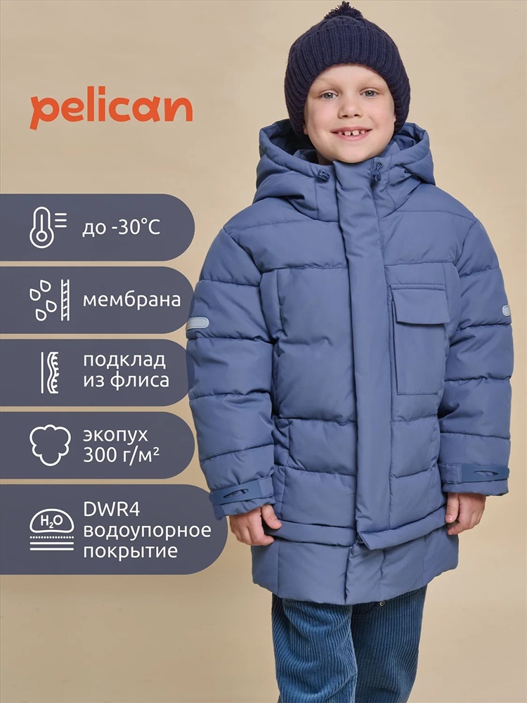 Производитель: PELICAN; Российский размер: 98; Рост: 98; Возраст: 3; Обхват груди: 52; Обхват талии: 48; Обхват бедер: 54; Длина рукава: 32-34; Обхват шеи: 27; Артикул поставщика: BZXZ3362/11; Состав: 100%полиэстер, подклад- 100%полиэстер, утеплитель- экопух 100%полиэстер; Сезон: Осень, Зима; Год: 2024