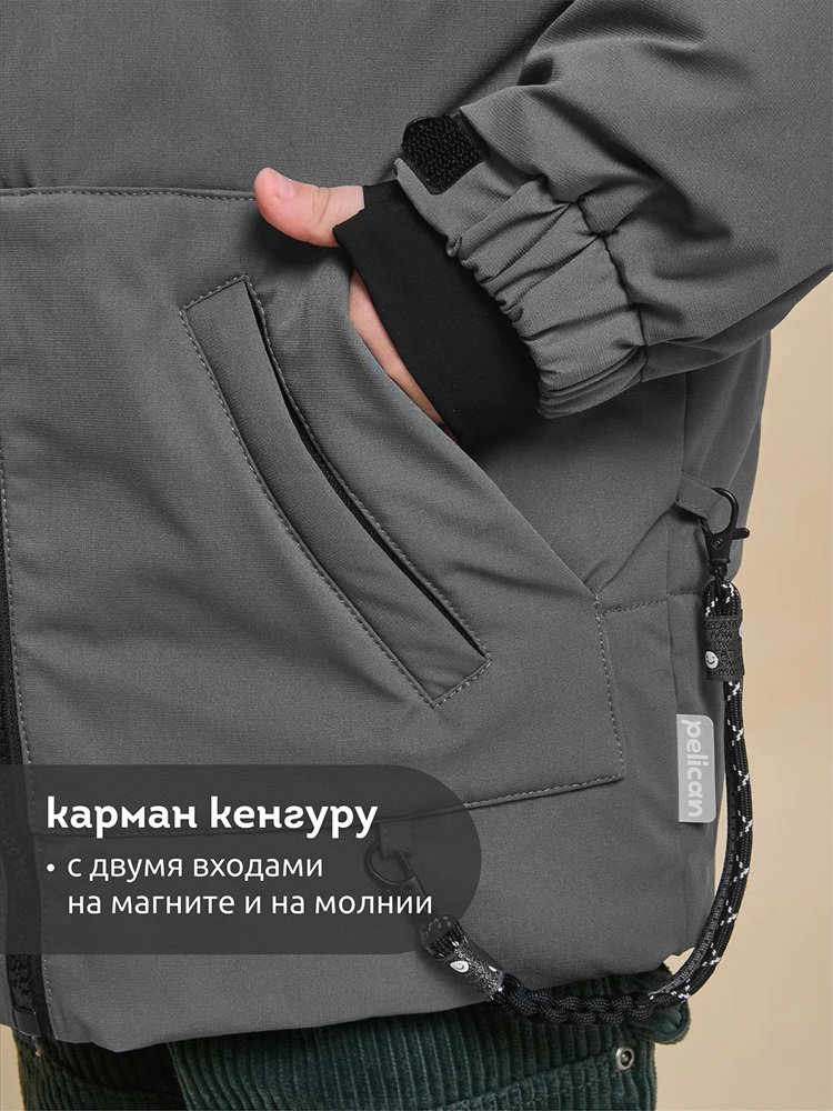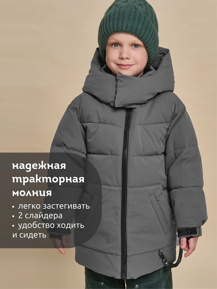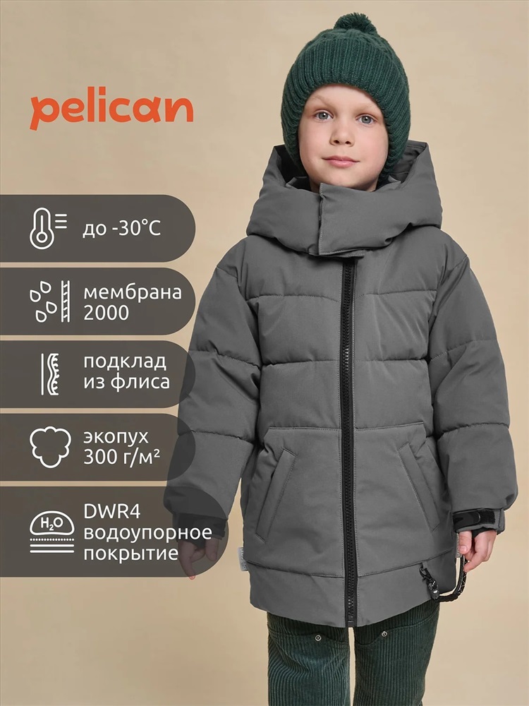 Производитель: PELICAN; Российский размер: 98; Рост: 98; Возраст: 3; Обхват груди: 52; Обхват талии: 48; Обхват бедер: 54; Длина рукава: 32-34; Обхват шеи: 27; Артикул поставщика: BZXZ3362/12; Состав: 100%полиэстер+мембрана, подклад- 100%полиэстер, утеплитель- экопух 100%полиэстер; Сезон: Осень, Зима; Год: 2024 Пуховик зимний для мальчика, модель из мембранной ткани. На внешнюю поверхность материала нанесена водоотталкивающая пропитка (DWR), она задерживает грязь и влагу снаружи — ребёнок не промокнет от снега, а пуховик без проблем отстирается. Также есть дополнительная пропитка на внутренней стороне ткани — для оптимальной защиты от промокания. Куртка прямого оверсайз-силуэта подходит для любого типа фигуры. Капюшон с двумя швами, что обеспечивает анатомически правильную форму и комфортную посадку по голове. Капюшон не отстегивается, он красивый и объёмный за счёт дополнительного наполнителя в камерах, предусмотрена регулировка его объема эластичными шнурами с пластиковыми стопперами. По низу рукавов манжета, которая дополнительно застёгивается силиконовой патой на липучке (велькро) — удобно регулировать объем, быстро и просто застёгивать и расcтёгивать. Внутри рукава ветрозащитная манжета из трикотажного полотна с прорезью для большого пальца, которая позволяет придерживать рукав при надевании перчаток. Центральная застёжка на прочную тракторную молнию. Тканевый стоппер защищает подбородок от зажима молнией. Фиксирующая строчка предохраняет планку от «заедания» в процессе застёгивания. Зимний пуховик тёплый — для наилучшей защиты от ветра и холода центральная молния дополнительно закрыта внутренней ветрозащитной планкой. По низу объём изделия регулируется эластичным шнуром со стопперами. Пуховик на мальчика спереди дополнен карманами-кенгуру застёжками на магниты — ребёнку просто и быстро открывать и закрывать даже в варежках. Карманы внутри утеплены мягким флисом. Также есть дополнительные карманы на молнии с планкой — удобно пользоваться. Пуховик в трендовом стиле стритвир — для тех, кто понимает в моде. На левом кармане оригинальный декор — навесной шнур контрастного цвета. Он крепится с помощью двух карабинов за петельки из основной ткани в кармане и боковом шве куртки — при желании его можно снять. В каждой куртке нейм-лейбл! Ребёнок не потеряется и не потеряет куртку! На спинке и в боковых швах расположены светоотражающие элементы — безопасность в тёмное время суток. Изделие неприхотливо в уходе — ухаживать согласно указанным на вшивных ярлыках рекомендациям. Пуховик однотонный, без принта. Куртка выполнена из полиэстера с мембраной — она не только отлично защищает от холода и влаги, но и хорошо пропускает воздух, позволяя коже ребёнка дышать. Подкладка из мягкого, тёплого и дышащего флиса (по стану, внутреннему воротнику и в капюшоне). В рукавах подкладка из тонкого и гладкого полиэстера — благодаря этому ребенку легко надевать куртку, руки не путаются в рукавах, а словно проскальзывают в них. Куртка выполнена в красивых трендовых цветах, которые хорошо комбинируются с различными брюками. Куртка зимняя оверсайз идеальна для маленьких мальчиков дошкольного и младшего школьного возраста, а также подростков. Рекомендуемый температурный режим: не ниже минус 30 градусов. Утеплитель: экопух. В рукавах дополнительный слой тонкого 