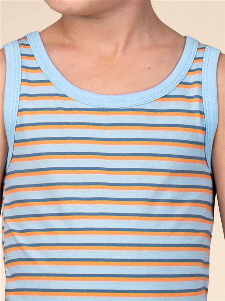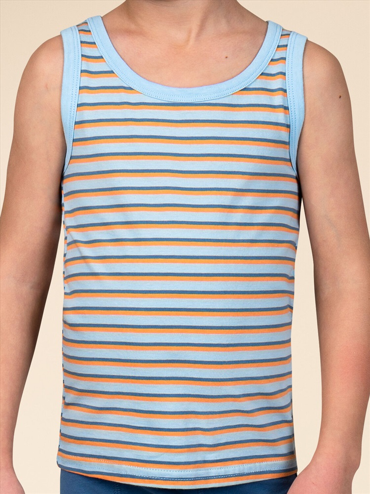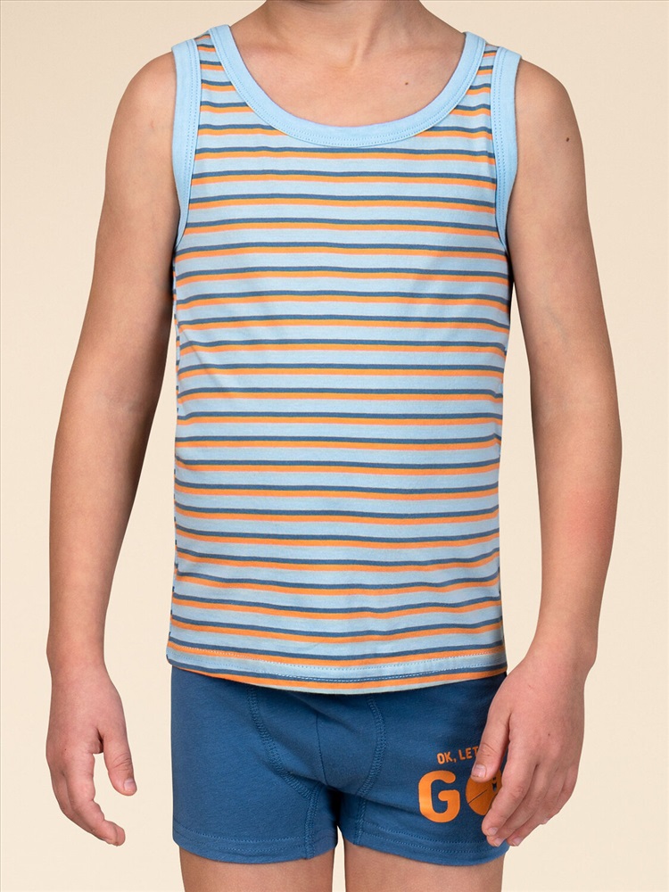 Если вы в поисках качественного, комфортного и стильного белья для своего ребёнка, обратите внимание на нашу майку из 100% хлопка для мальчика. Натуральный состав ткани обеспечивает изделию мягкость и воздухопроницаемость — кожа ребёнка дышит. Майка детская комфортно сидит по фигуре, её можно надевать под рубашку, джемпер, свитер. Горловина и проймы изделия отделаны пайпингом в тон — они хорошо держат форму, надолго сохраняют аккуратный внешний вид. Хлопковая майка в оранжево-голубую полоску лаконичного дизайна, неприхотлива в уходе. В линейке представлены майки детские следующих размеров: 1 (86): 2 (92): 3 (98): 4 (104): 5 (110): 6 (116): 7 (122): 8 (128): 9 (134): 10 (140): 11 (146). Нательная майка для мальчика подходит для повседневной носки, отдыха, а также для сна и дома — прекрасный выбор для вашего ребёнка! Изделие можно носить круглый год: летом, весной и осенью (демисезон), зимой. Майка детская для мальчиков — замечательный подарок сыну, внуку, брату на любой праздник. Выбирайте нужный размер по таблице размеров на фото. Цвет товара на экране вашего устройства может отличаться от цвета изделия вживую. Товар возврату и обмену не подлежит.