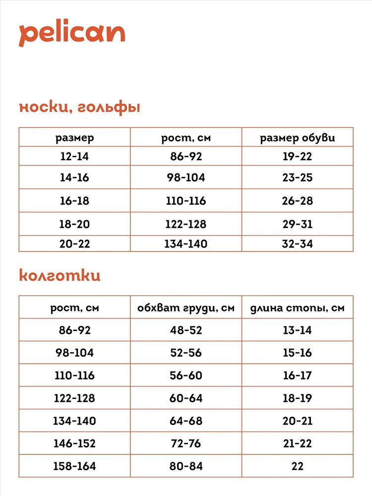 Производитель: PELICAN; Российский размер: 16, 18; Рост: 110-116; Длина стопы: 16-18; Артикул поставщика: UEGL3363/1(2); Состав: 76%хлопок 21%полиэстер 3%эластан; Сезон: Осень, Весна; Год: 2024