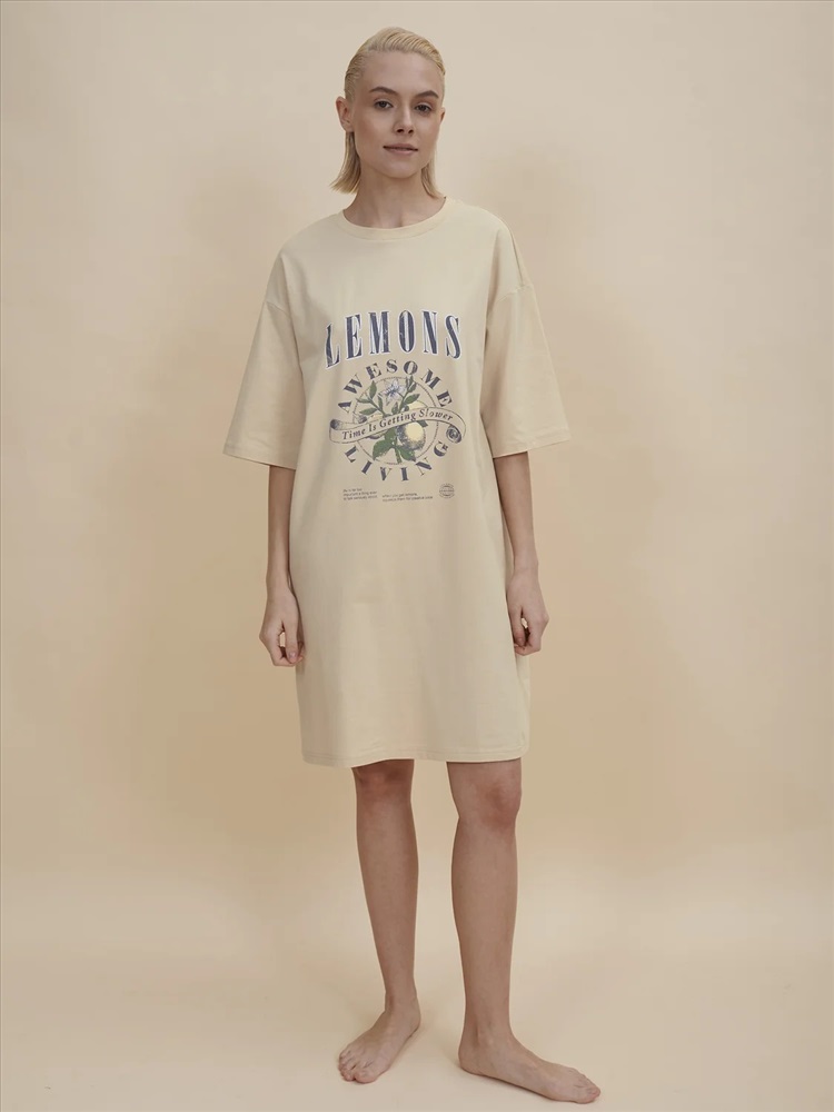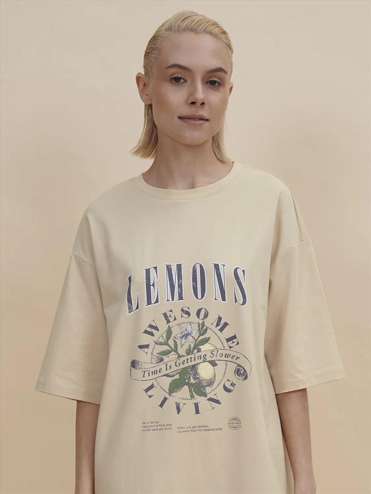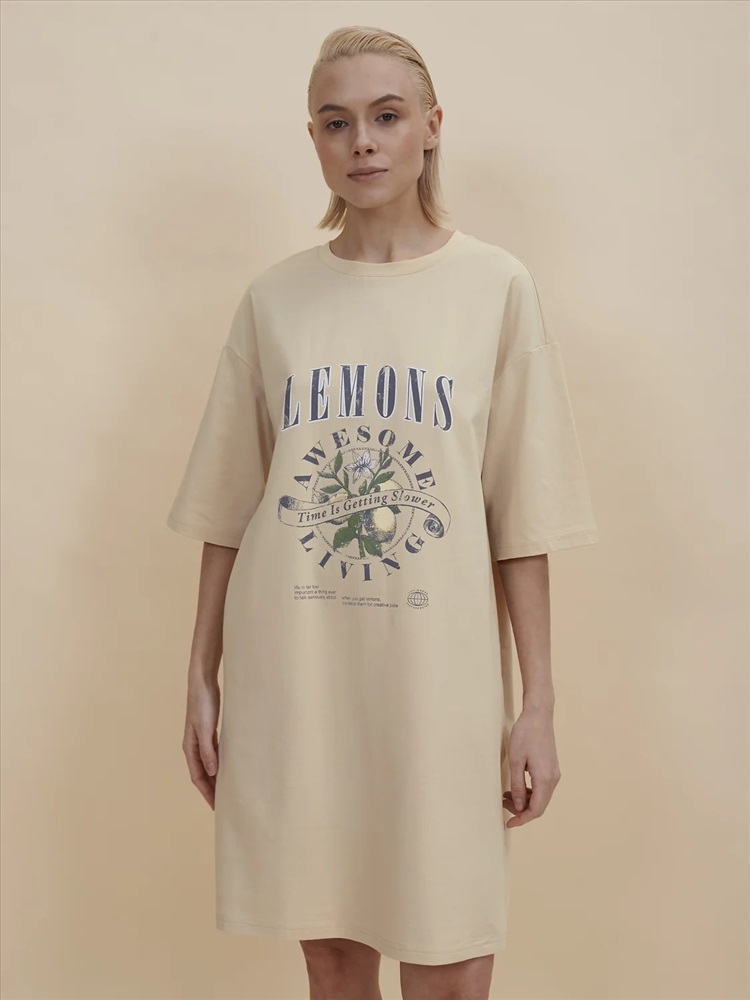 Стильное женское летнее платье футболка длиной до колена. Трикотажное платье оверсайз прямого кроя с коротким рукавом. Однотонное платье-футболка с принтом – базовый элемент женского гардероба. Повседневное платье свободного кроя подойдет для любой фигуры. В составе ткани изделия преобладает высококачественный хлопок – платье мягкое и отлично пропускает воздух, позволяя коже дышать. Эластан помогает модели надолго сохранить первоначальную форму. Стильный и актуальный принт в духе садоводческих клубов эластичный и прочный, отлично переносит многочисленные стирки. Надписи переводятся: "лимоны", "потрясающее времяпрепровождение", "время идёт медленнее", "жизнь — слишком серьёзная штука, чтобы говорить о ней всерьёз", "когда вы возьмёте лимоны, выжмите из них творческие соки", "жизнь хороша", "просто добавь воды". В линейке представлены следующие размеры: XS (42), S (44), M (46), L (48), XL (50). Просторное платье в спортивном стиле подходит как женщинам, так и девушкам, девочкам-подросткам. Модель представлена в следующих цветах: чёрный, голубой, синий, жёлтый, бежевый, зелёный. Свободное платье оверсайз идеально для носки дома, комфортного сна, пижамной вечеринки. Платье майка подходит для повседневного летнего гардероба, прогулок, отдыха, пляжа. А также модель удобна для беременных. Женское трикотажное платье – чудесный подарок для мамы, сестры или подруги на любой праздник. Выбирайте нужный размер по таблице размеров на фото. Цвет товара на экране вашего устройства может отличаться от цвета изделия вживую.