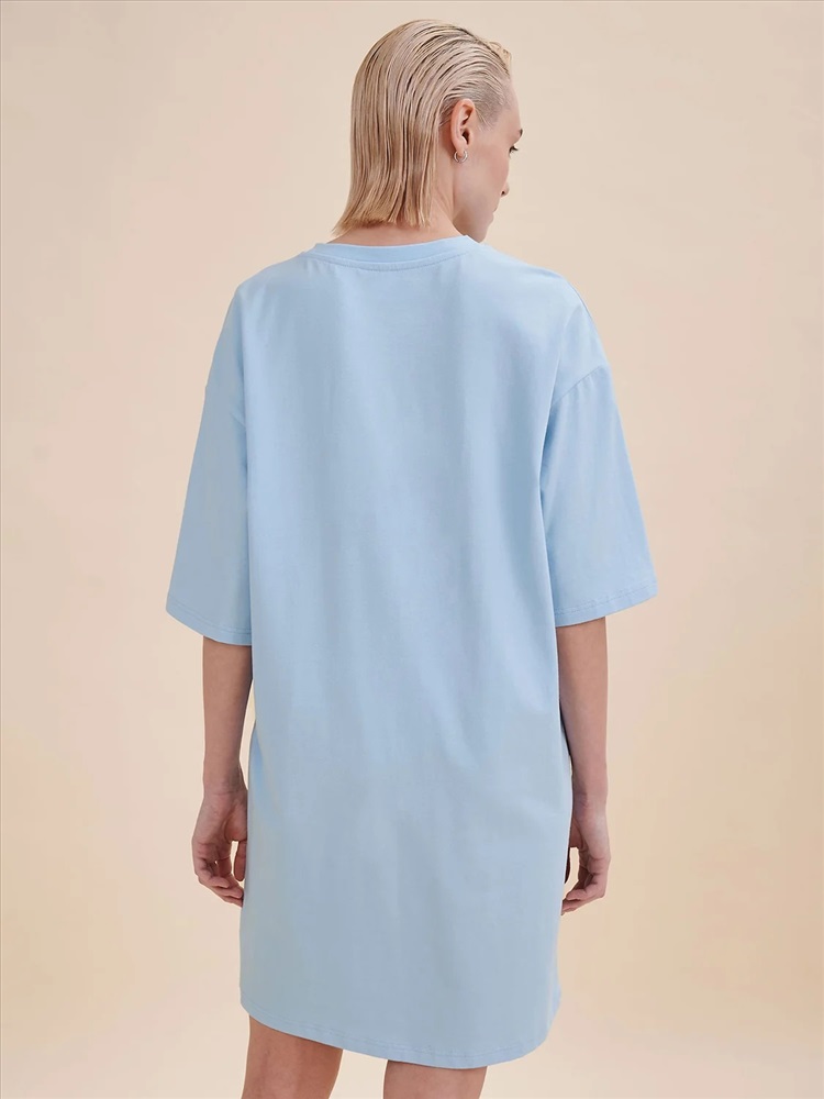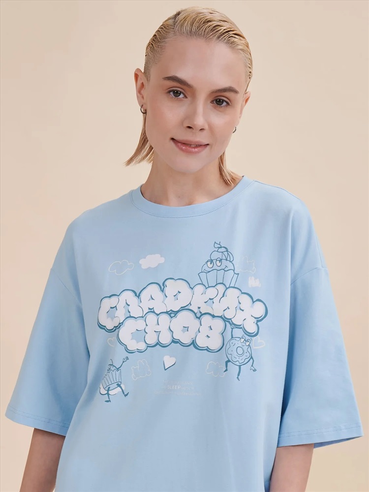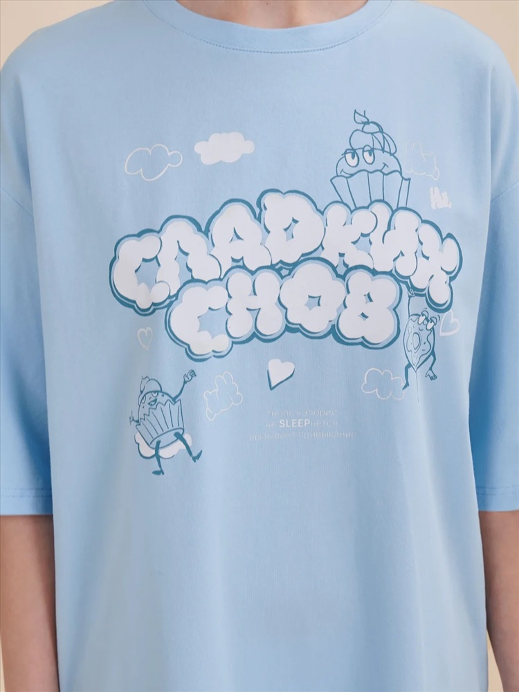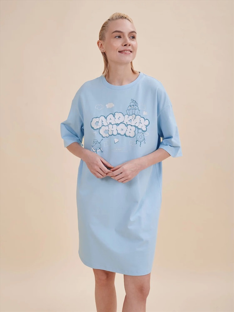Стильное женское летнее платье футболка длиной до колена. Трикотажное платье оверсайз прямого кроя с коротким рукавом. Однотонное платье-футболка с принтом – базовый элемент женского гардероба. Повседневное платье свободного кроя подойдет для любой фигуры. В составе ткани изделия преобладает высококачественный хлопок – платье мягкое и отлично пропускает воздух, позволяя коже дышать. Эластан помогает модели надолго сохранить первоначальную форму. Милый принт в виде сладостей с надписью актуальным шрифтом, напоминающим облака: "Сладких снов". Принт эластичный и прочный, отлично переносит многочисленные стирки. В линейке представлены следующие размеры: XS (42), S (44), M (46), L (48), XL (50). Просторное платье в спортивном стиле подходит как женщинам, так и девушкам, девочкам-подросткам. Модель представлена в двух трендовых цветах: голубом и розовом. Свободное платье оверсайз идеально для носки дома, комфортного сна, пижамной вечеринки. Платье-майка подходит для повседневного летнего гардероба, прогулок, отдыха, пляжа. А также модель удобна для беременных. Женское платье-футболка – чудесный подарок для мамы, сестры или подруги на любой праздник. Выбирайте нужный размер по таблице размеров на фото. Цвет товара на экране вашего устройства может отличаться от цвета изделия вживую.