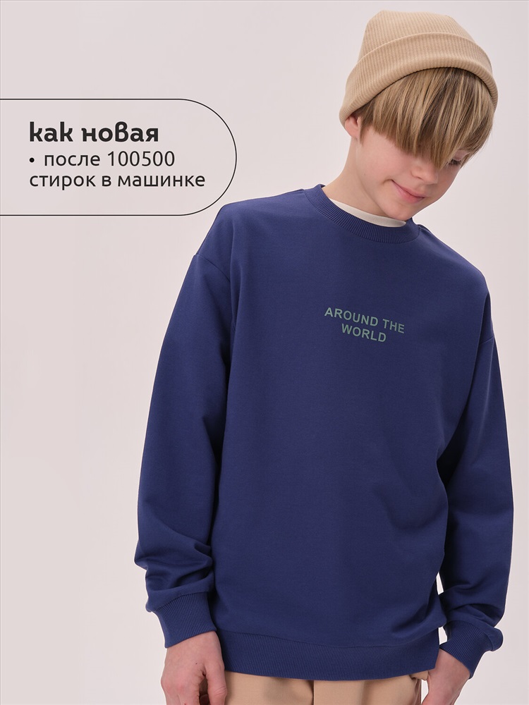 Свитшот без начеса из материала футер-петля. Манжеты и низ изделия из рибаны. Толстовка весенняя украшена принтом в морском стиле с надписями. Перевод надписей "I just really like the sea is calling" - мне просто очень нравится что море зовёт, "whales around the world" - киты по всему миру, "dive into adventure" - погрузись в приключение. В составе ткани преобладает высококачественый хлопок — спортивная кофта приятна на ощупь и прекрасно пропускает воздух. Тонкую кофту можно носить круглый год. Широкая размерная сетка подойдет как для малыша так и для подростка.