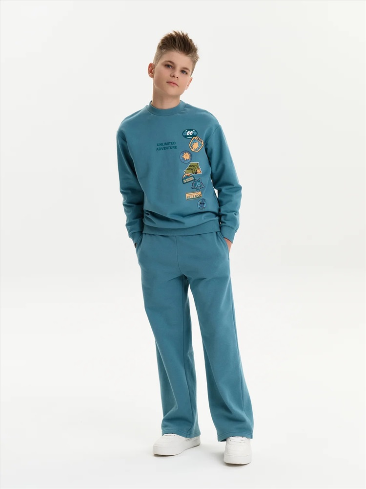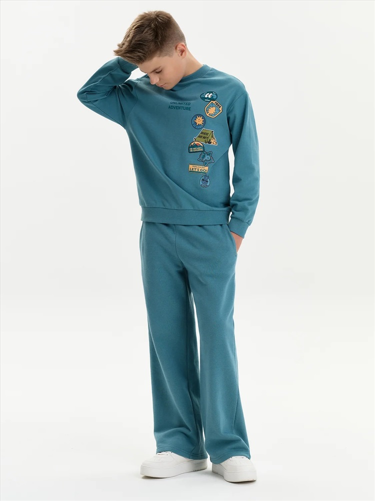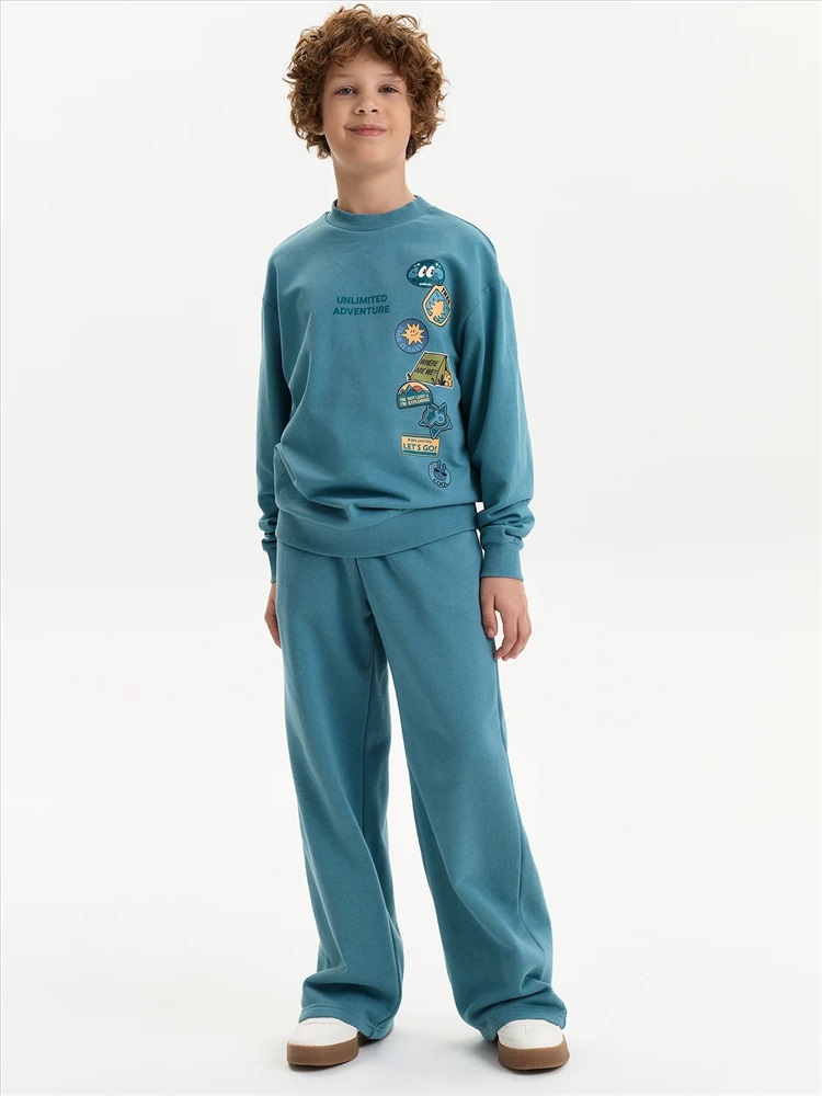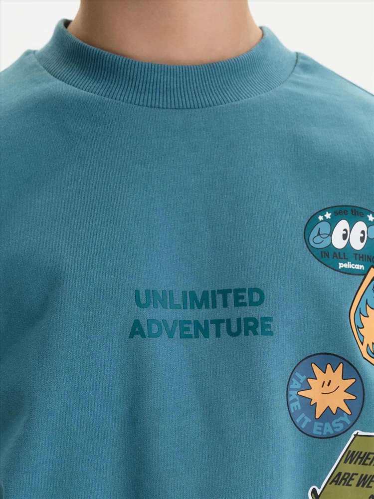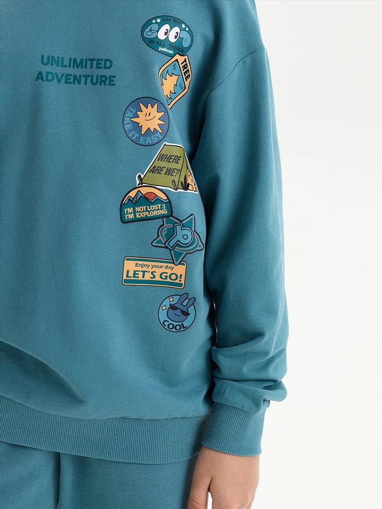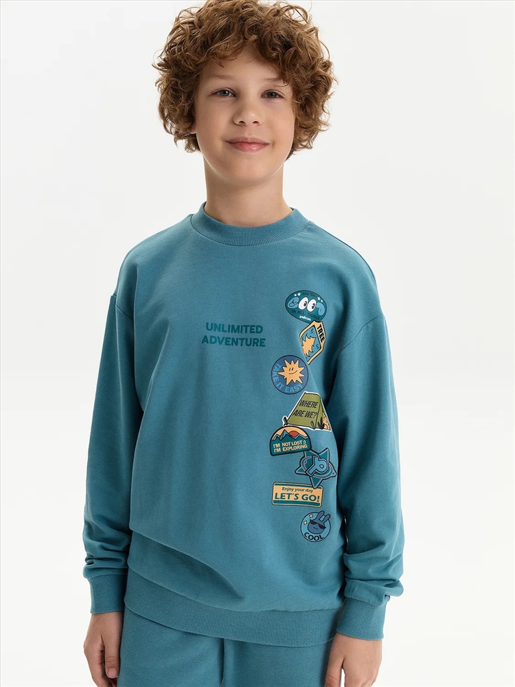 Свитшот из материала футер-петля. Манжеты и низ изделия из рибаны. Перевод текста: Безграничные приключения: Видеть во всём хорошее: Не напрягаться: Где мы?: Я не потерялся, я исследую: Наслаждайтесь своим днём: Вперёд!