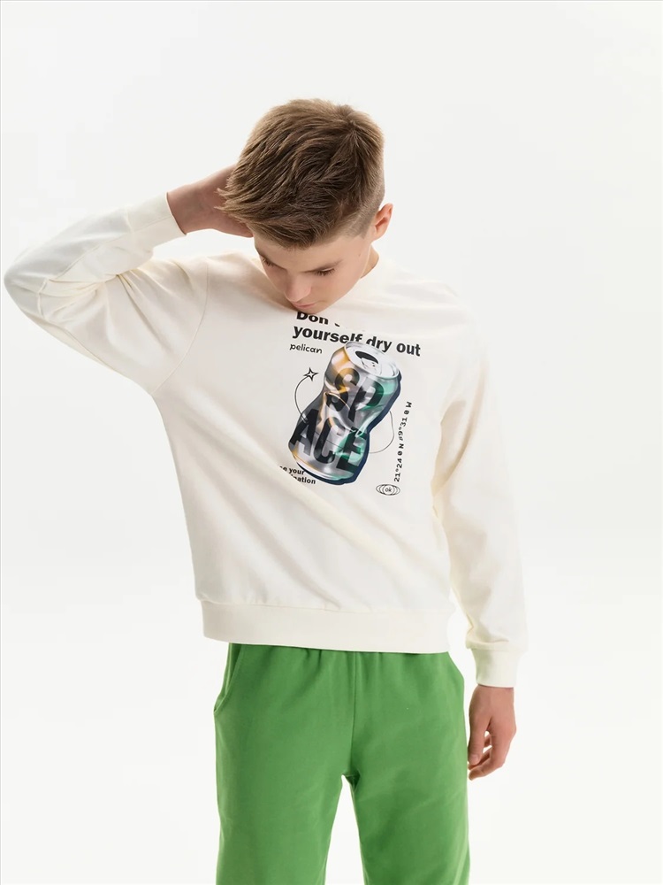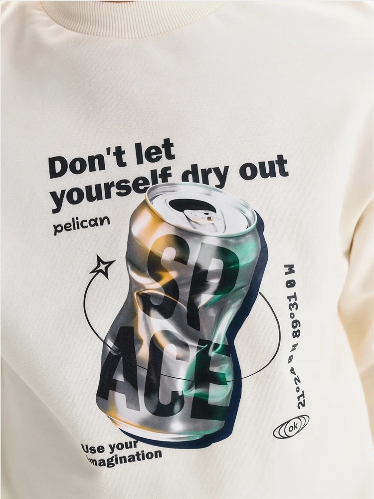 Свитшот из материала футер-петля. Манжеты и низ изделия из рибаны. Перевод текста: Не дай себе засохнуть: Космос: Используйте воображение: 21 24 0 N 89 31 0 W - координаты крупнейшего кратера на Земле(Чикшулуб).