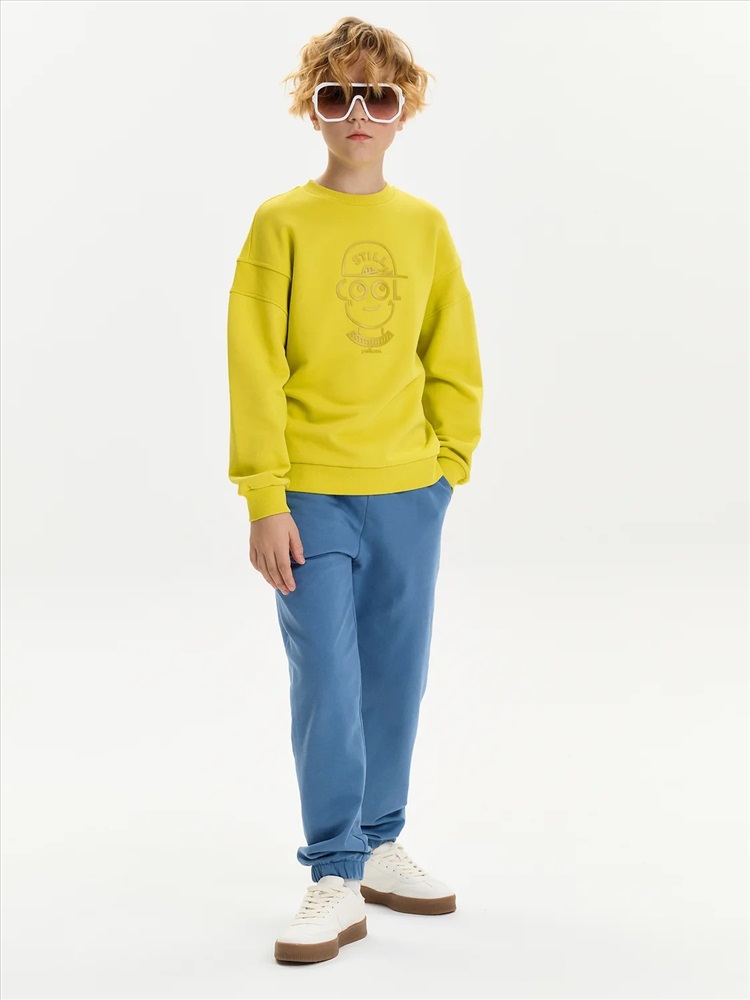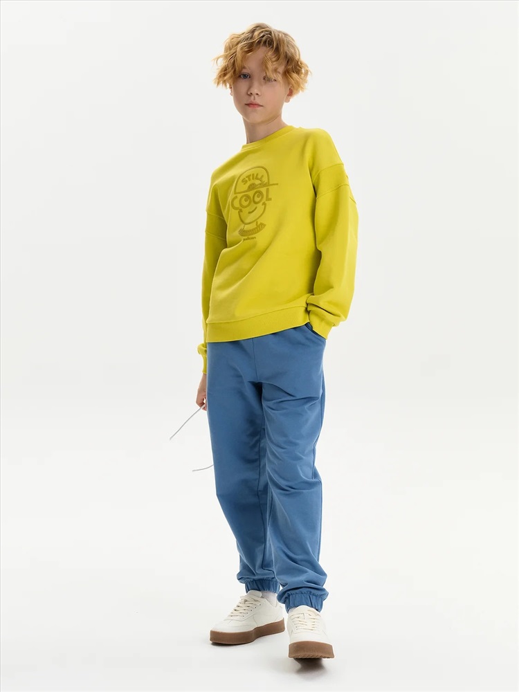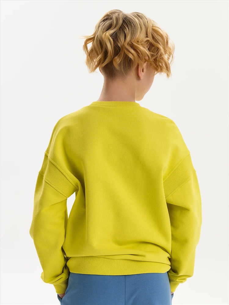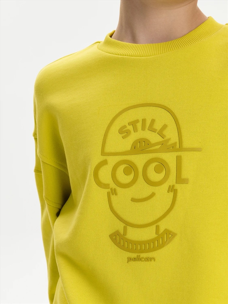 Толстовка однотонная базовая сделана из мягкого натурального хлопка с лёгкой петельной изнанкой. Современный крой: чуть укороченный силуэт с оригинальным рукавом в стиле "рубашка" добавляет модности. Эластичная горловина и манжеты из плотной ткани хорошо держат форму, не растягиваются и делают посадку комфортной. Декоративная вставка по плечу — модная деталь, которая выделяет свитшот среди обычных. Декор - выпуклый резиновый принт. Перевод: всё еще круто.