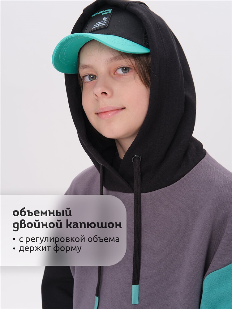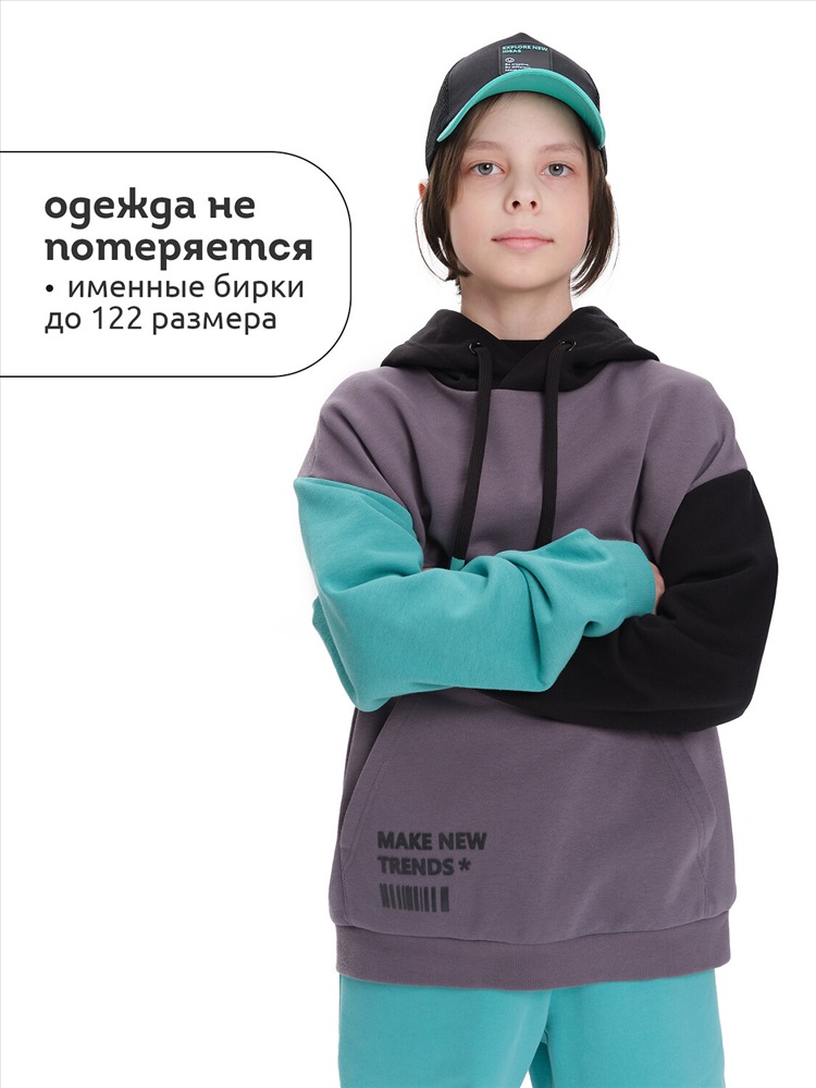 Худи для мальчика без начеса – актуальная вещь в любом сезоне, будь то весна, лето или осень. Кофта спортивная для мальчика выполнена из плотного футера-петля, который отлично согревает в прохладную погоду и при этом хорошо пропускает воздух – ребенок активно двигается, играет, не потеет. Толстовка свободного покроя оверсайз со спущенным плечом, углубленной проймой. Рукава а также низ изделия на манжете из рибаны. Удобный карман кенгуру. Капюшон на запахе со шнурками для регулировки. Изделие выполнено в актуальном стиле Digital и понравится юным геймерам. По переду текстовый принт. Перевод принта "make new trends" - делай новые тренды. Размерный ряд подходит как для малышей так и для подростков.