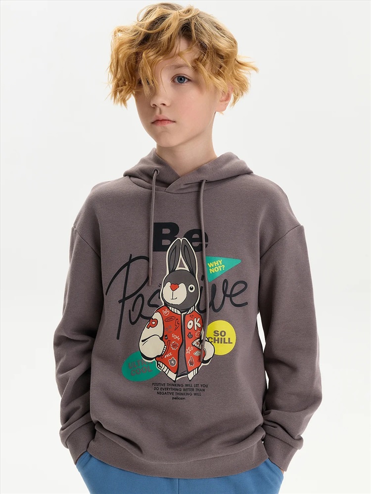 Худи из терри свободного покроя "оверсайз" со спущенным плечом, углубленной проймой. Низ рукава и низ изделия на манжете из рибаны. Капюшон двухшовный с запахом и люверсами, высота капюшона регулируется с помощью шнурка. Перевод текстов: Будь позитивным: почему бы и нет?: Так чилово: Ультра круто: Позитивное мышление: позволит тебе сделать: все лучше чем негативное мышление