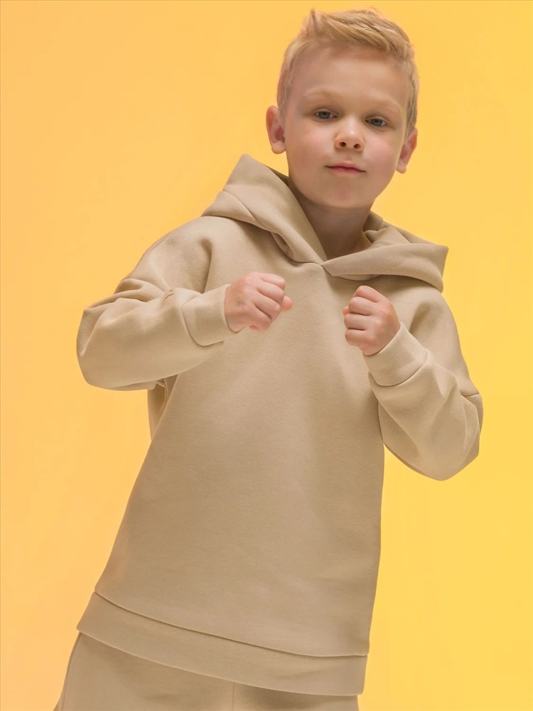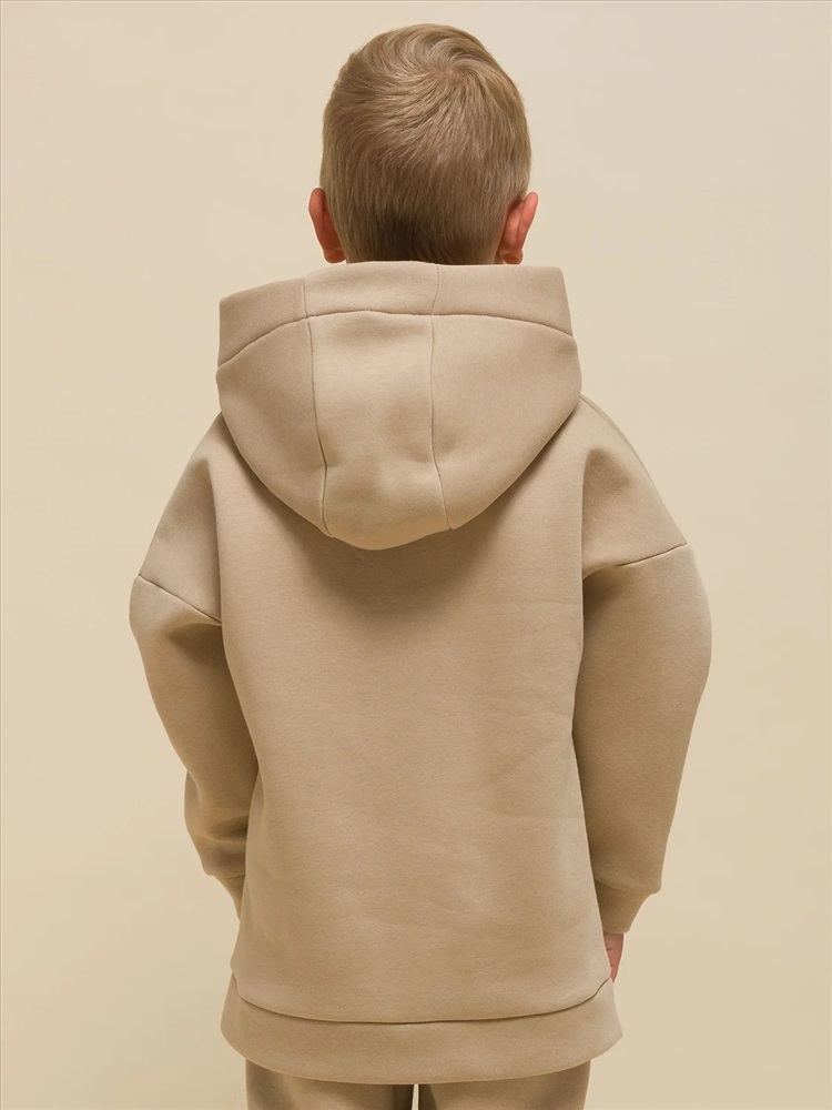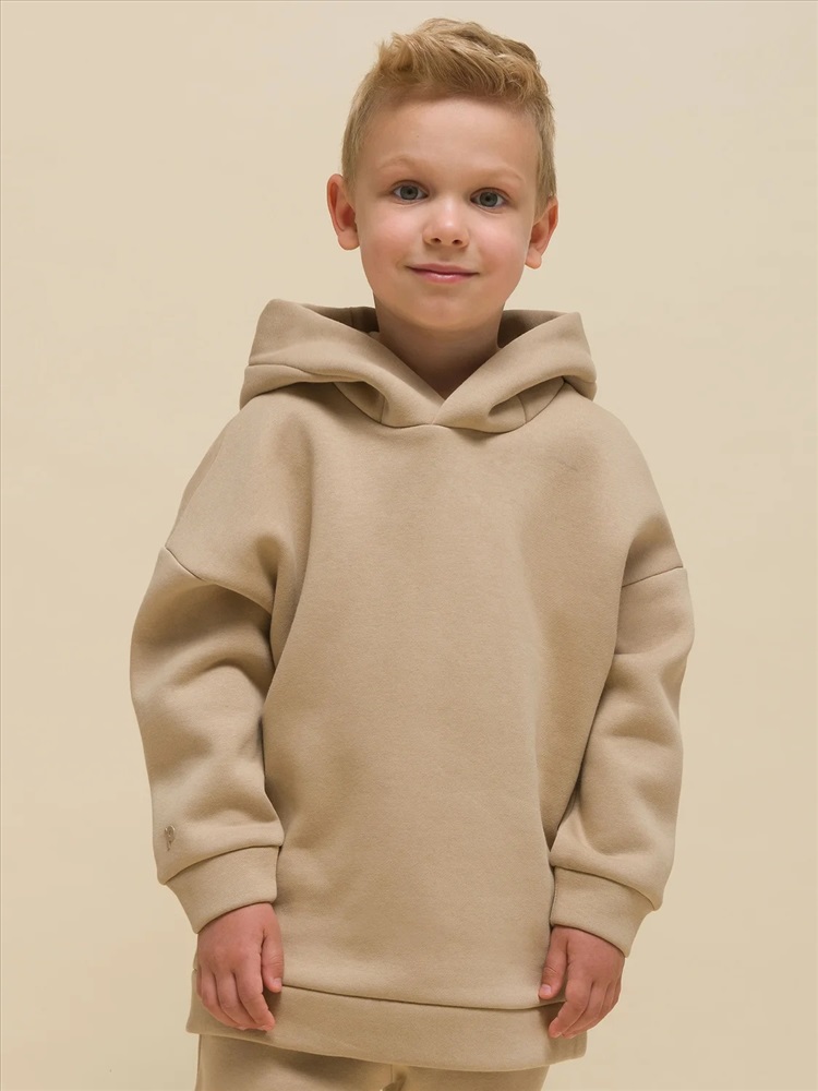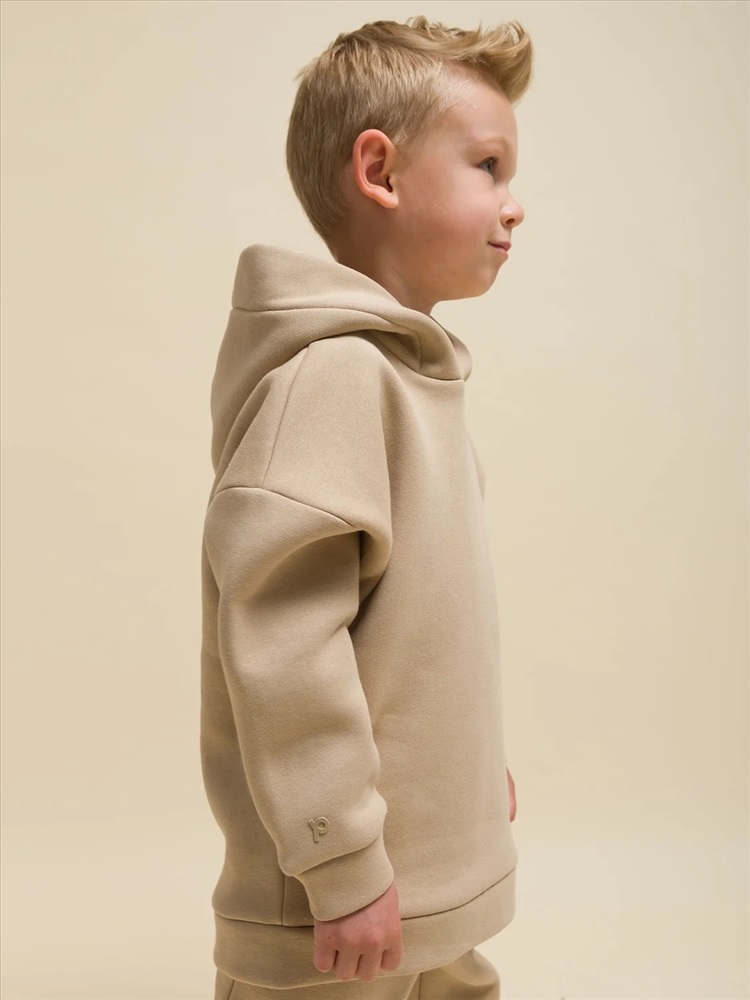 Худи для девочек и мальчиков из футера с начесом свободного силуэта с длинным рукавом, без карманов. Это однотонная базовая вещь для детского гардероба. Красивая и яркая одежда для ребенка, практичная и удобная при надевании для родителей. Двухшовный капюшон с подкладом из основного материала аккуратно ложится по голове и убережет от холода. Манжеты рукавов и низа изделия из основной ткани. Не утягивают, но придают силуэт. Деликатная изюминка модели - силиконовая буква P из логотипа бренда на правом рукаве.