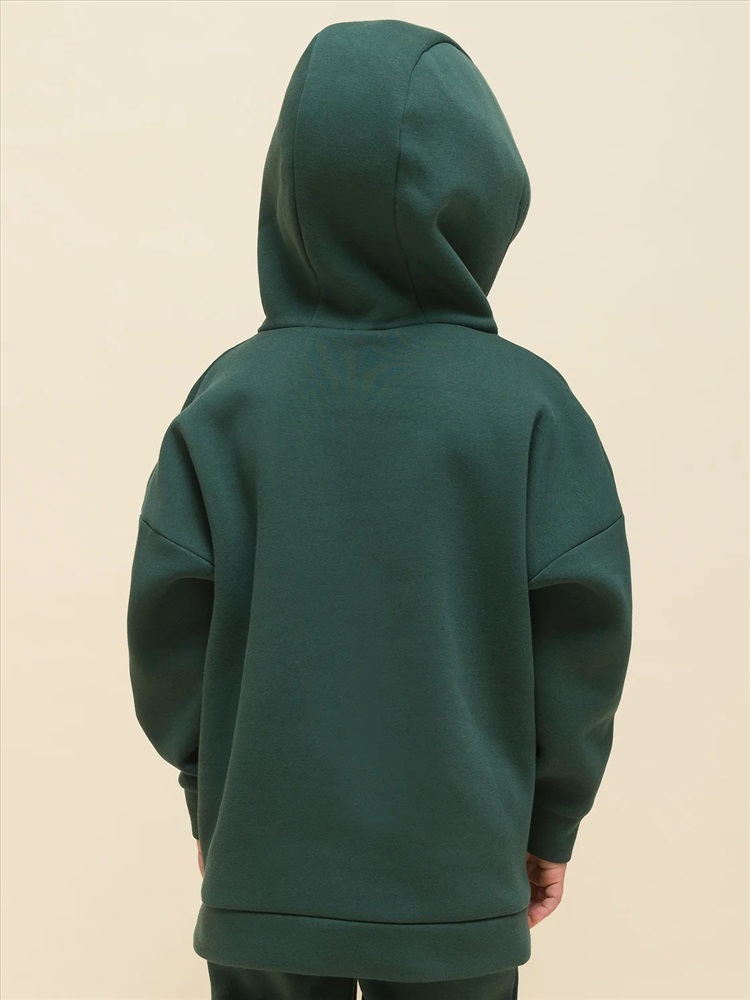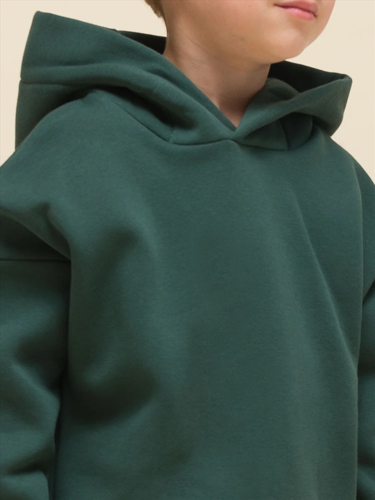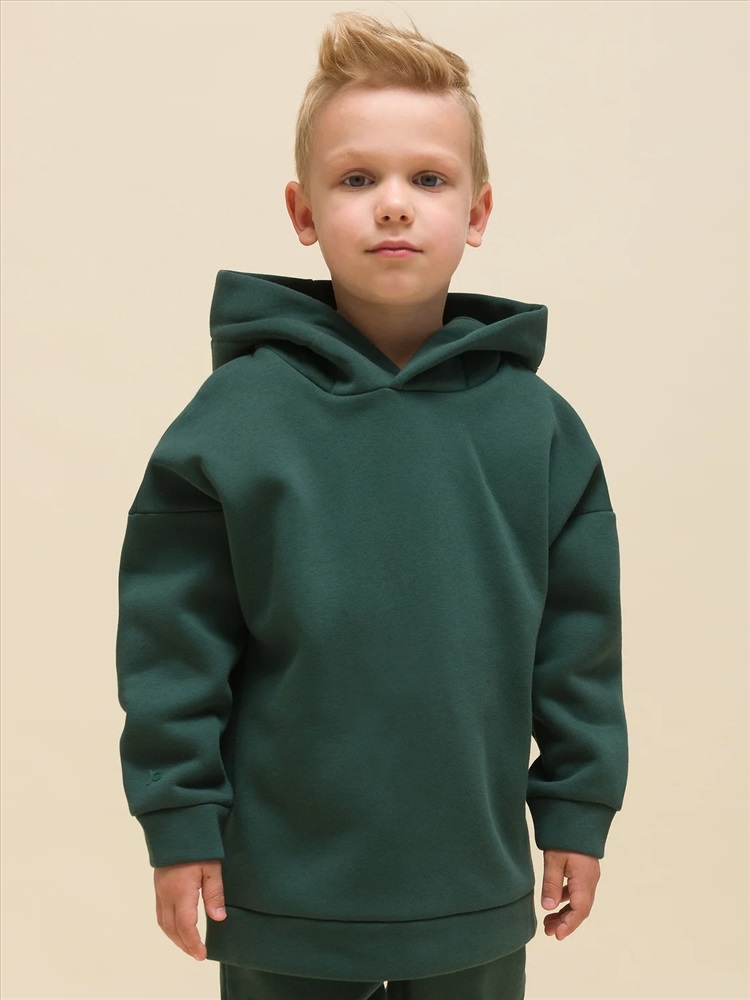 Худи для девочек и мальчиков из футера с начесом свободного силуэта с длинным рукавом, без карманов. Это однотонная базовая вещь для детского гардероба. Красивая и яркая одежда для ребенка, практичная и удобная при надевании для родителей. Двухшовный капюшон с подкладом из основного материала аккуратно ложится по голове и убережет от холода. Манжеты рукавов и низа изделия из основной ткани. Не утягивают, но придают силуэт. Деликатная изюминка модели - силиконовая буква P из логотипа бренда на правом рукаве.