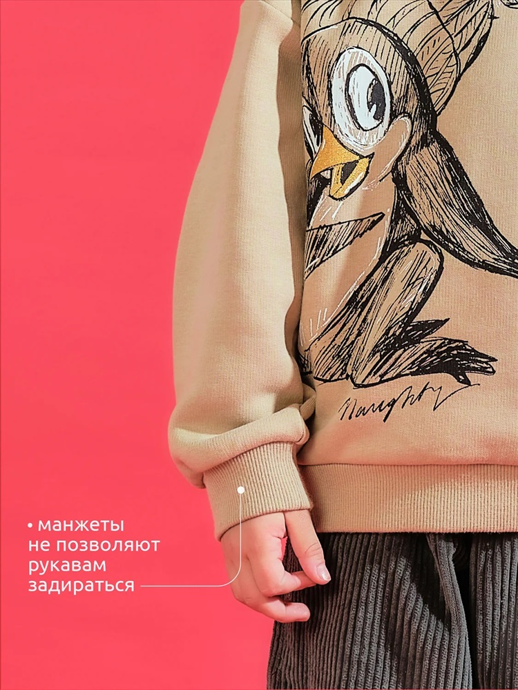 Теплое худи с начесом. Кофта для девочек и мальчиков трендового оверсайз-силуэта со спущенным плечом. Худи с капюшоном защитит от холода и ветра. Модель дополнена манжетами из эластичной рибаны по низу и рукавам. Рибана не растягивается и надолго сохраняет отличный внешний вид. Изделие неприхотливо в уходе. Худи оверсайз с принтом из ткани с высоким содержанием хлопка — модель мягкая, воздухопроницаемая и гипоаллергенная. Благодаря полиэстеру худи износостойкое, сохраняет форму даже после множества стирок. Худи для мальчика выполнено в универсальной расцветке, без проблем сочетается с любыми брюками, джинсами. Толстовка детская по переду и спинке декорирована принтом, надписи переводится: «непослушный». Принты эластичные и устойчивые, не боятся частых стирок. Отличное худи для девочки дошкольного и младшего школьного возраста, а также подростков и малышей. Помните о правильном уходе за изделием: рекомендуется стирать при температуре не выше 30 °C, без предварительного замачивания, с изнанки. Это поможет сохранить качество и цвет толстовки на длительное время. Не забывайте о выборе правильного размера. Используйте таблицу размеров на фотографии, чтобы выбрать подходящий вариант для вашего мальчика. Обратите внимание, что цвет товара на экране вашего устройства может отличаться от реального.