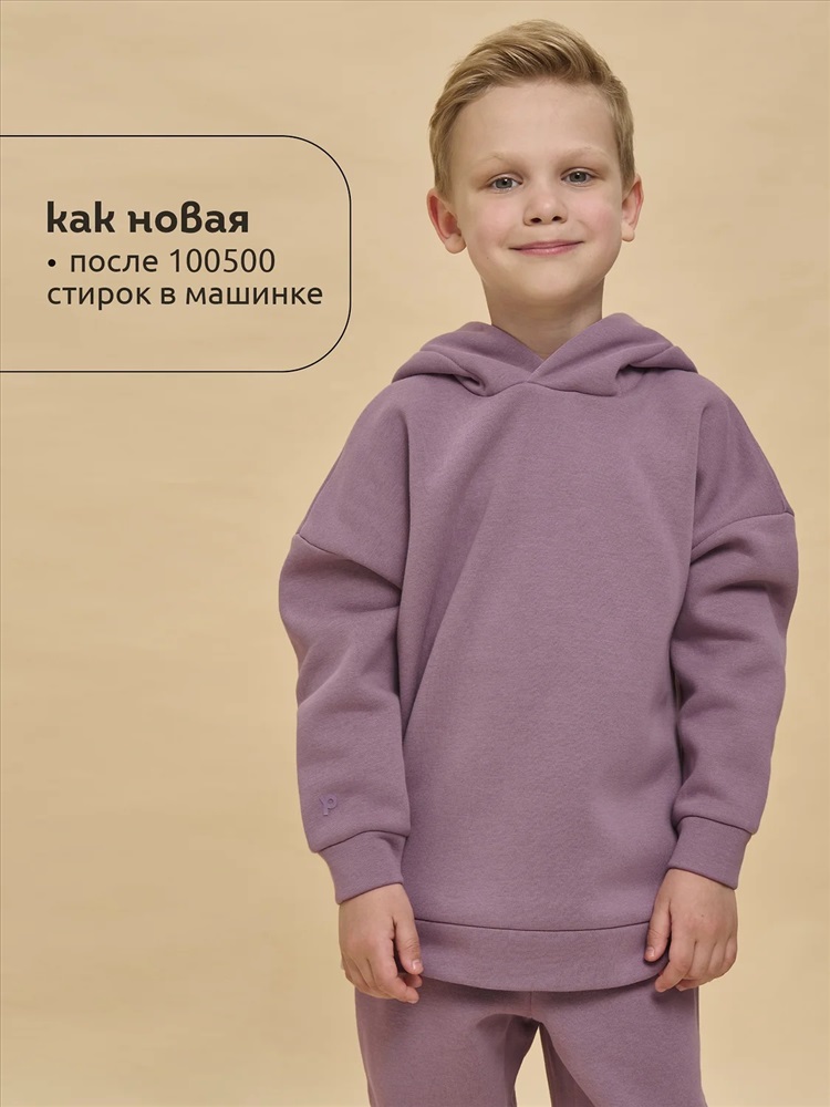 Худи для девочек и мальчиков из футера с начесом свободного силуэта с длинным рукавом, без карманов. Это однотонная базовая вещь для детского гардероба. Красивая и яркая одежда для ребенка, практичная и удобная при надевании для родителей. Двухшовный капюшон с подкладом из основного материала аккуратно ложится по голове и убережет от холода. Манжеты рукавов и низа изделия из основной ткани. Не утягивают, но придают силуэт. Деликатная изюминка модели - силиконовая буква P из логотипа бренда на правом рукаве.