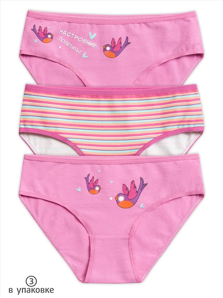 Трусики слипы со средней посадкой для девочек. В комплекте 3 изделия. По талии и по ноге эластик.